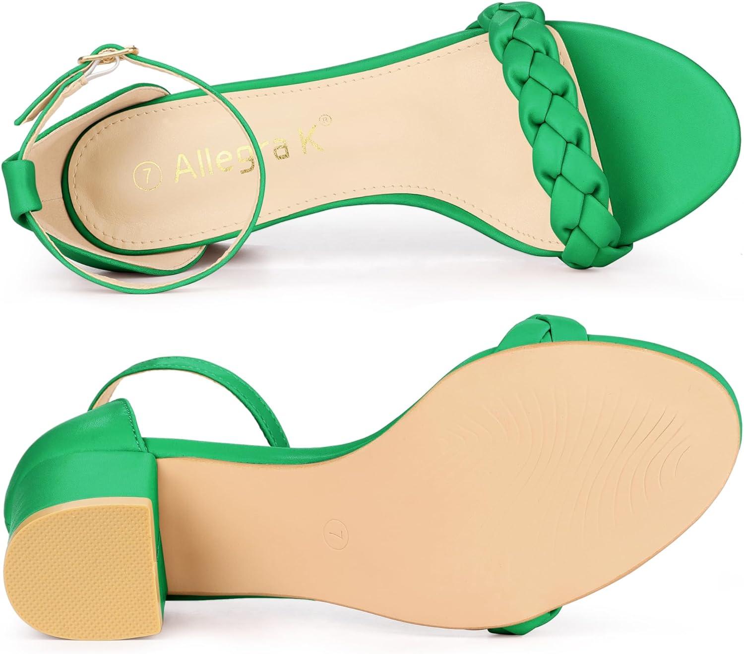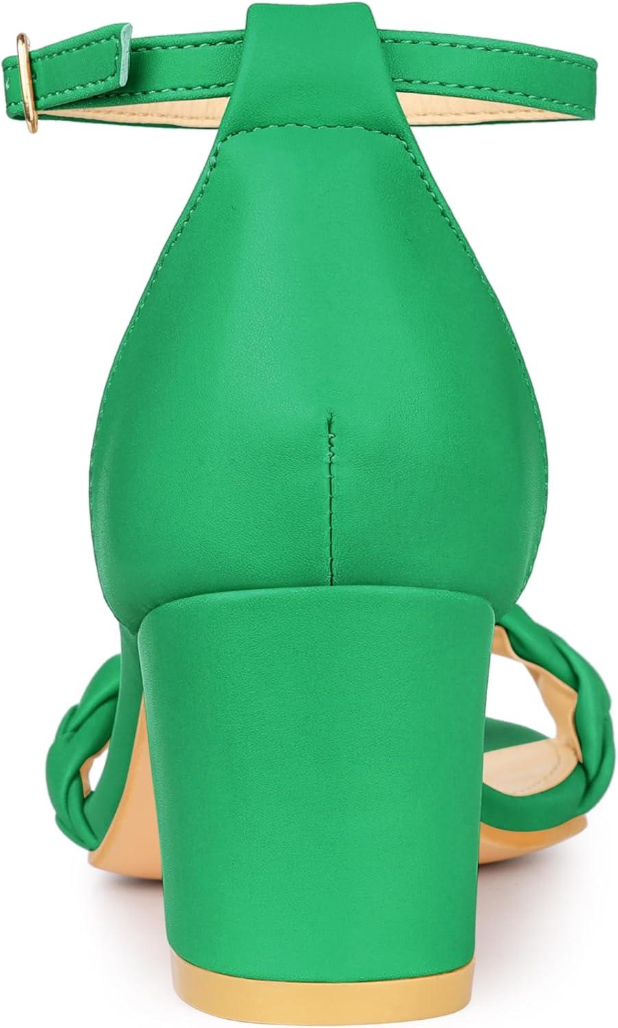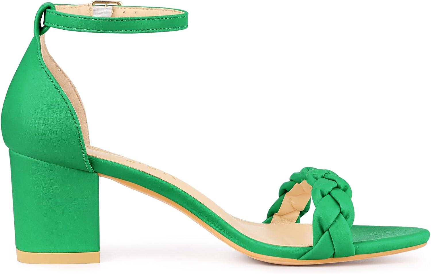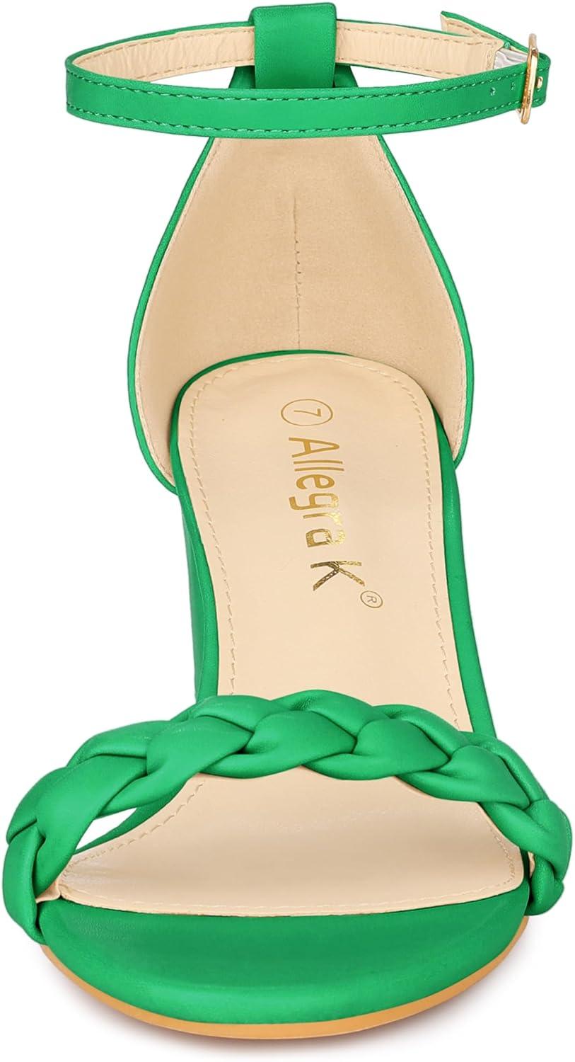 Allegra K Women’s Chunky Heels Ankle Strap Braided Heel Sandals(Green)