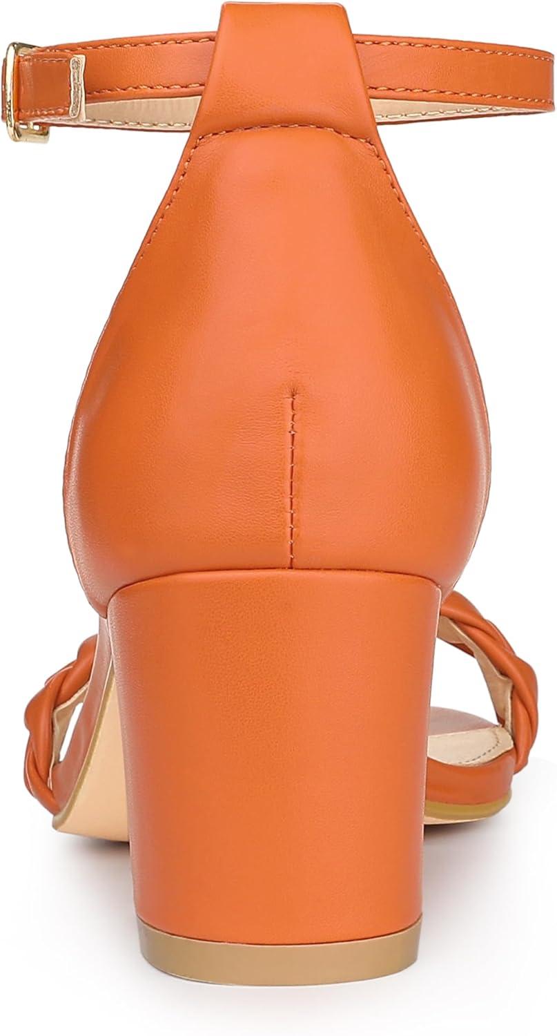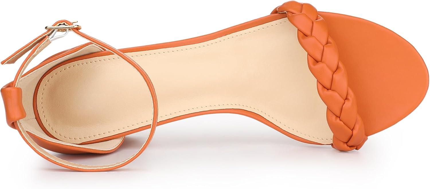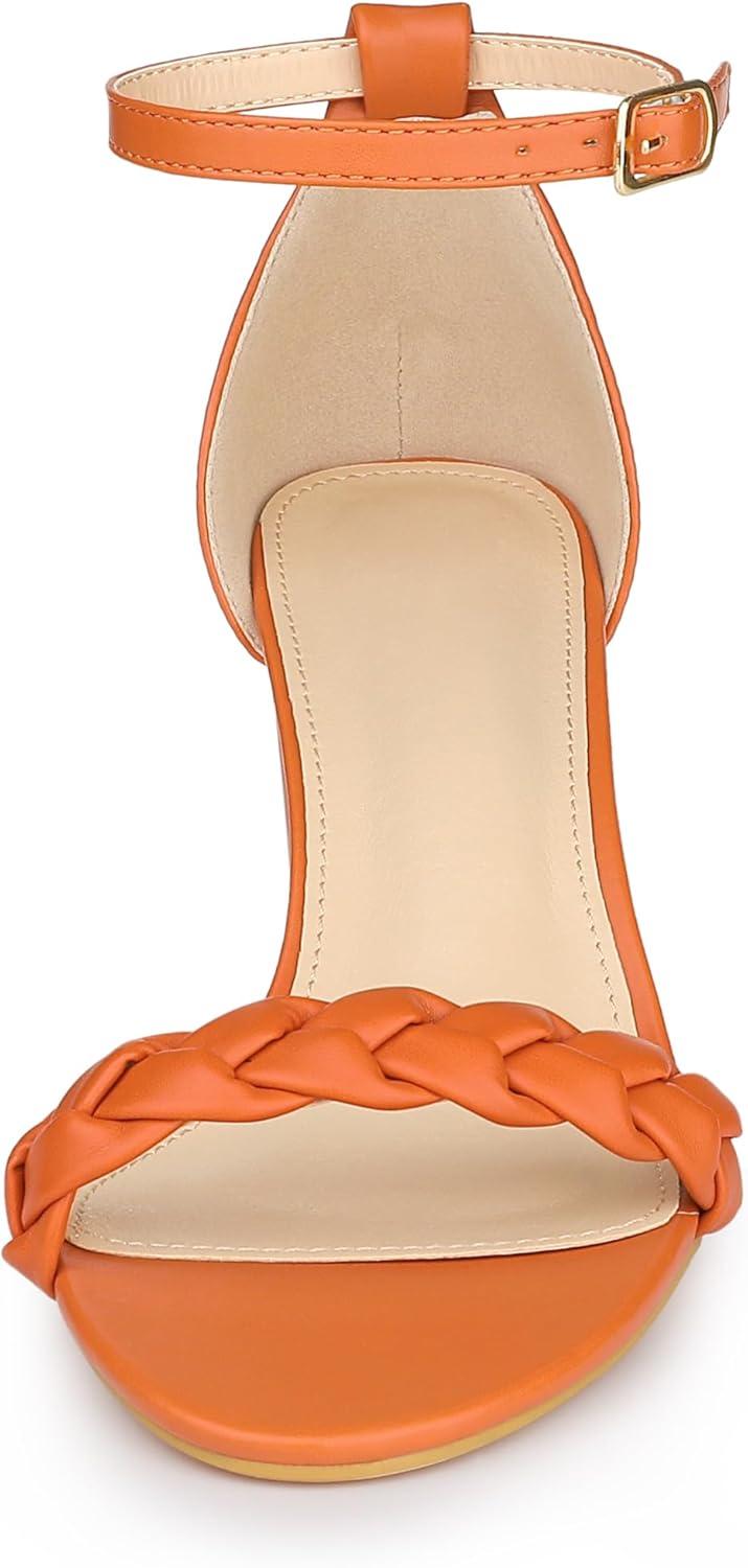 Allegra K Women’s Chunky Heels Ankle Strap Braided Heel Sandals(Orange)