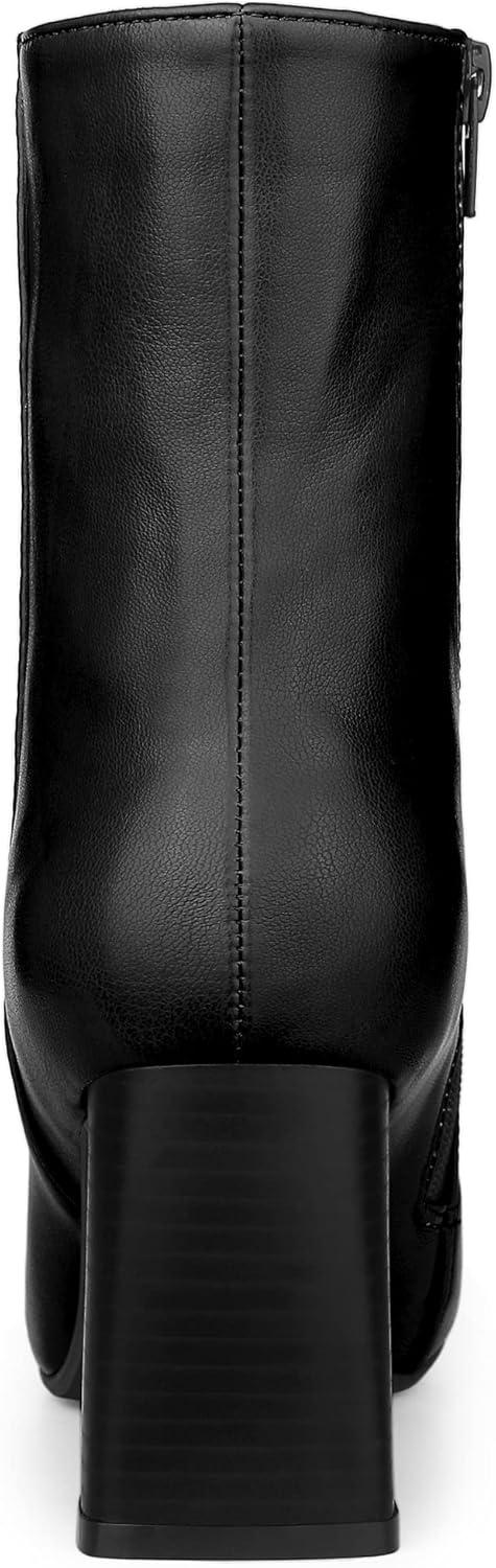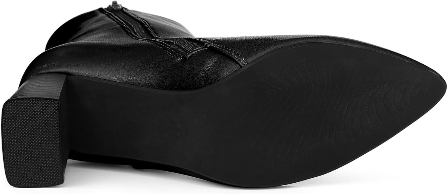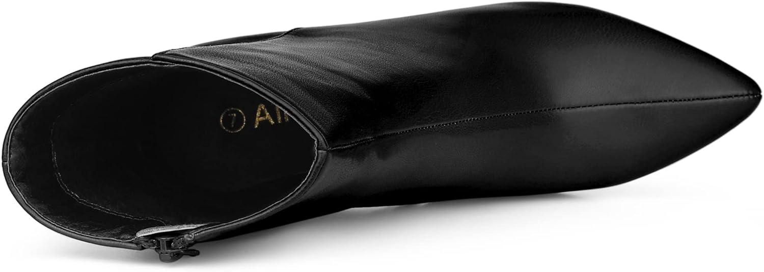 Allegra K Women's Chunky Heels Pointed Toe Ankle Boots(Black)