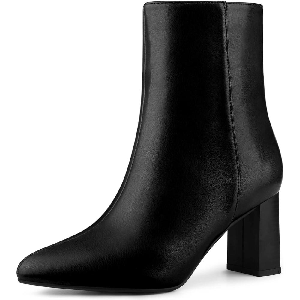 Allegra K Women’s Chunky Heels Pointed Toe Ankle Boots(Black)