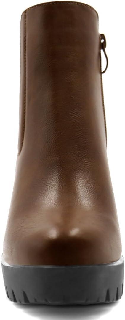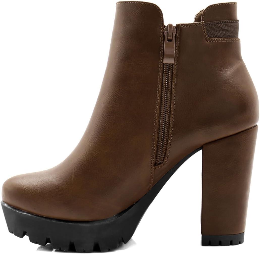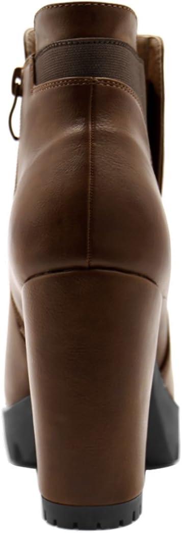 Allegra K Women's Chunky High Heel Platform Ankle Boots(Brown)