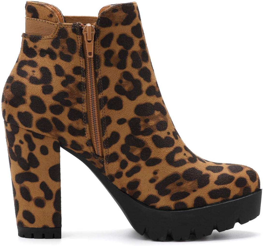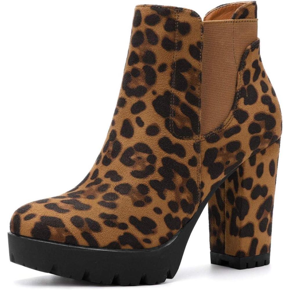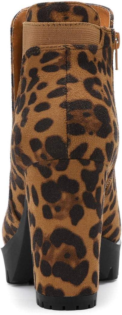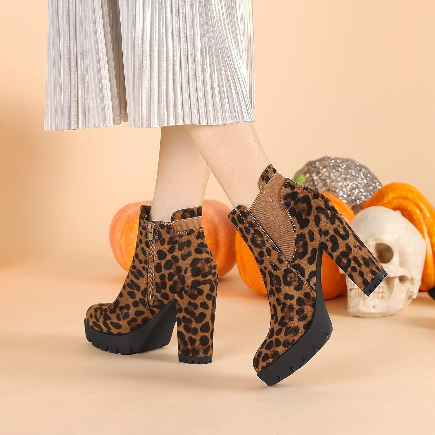 Allegra K Women’s Chunky High Heel Platform Ankle Boots(Leopard)