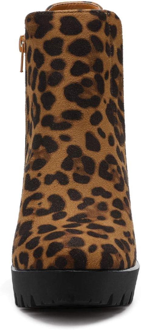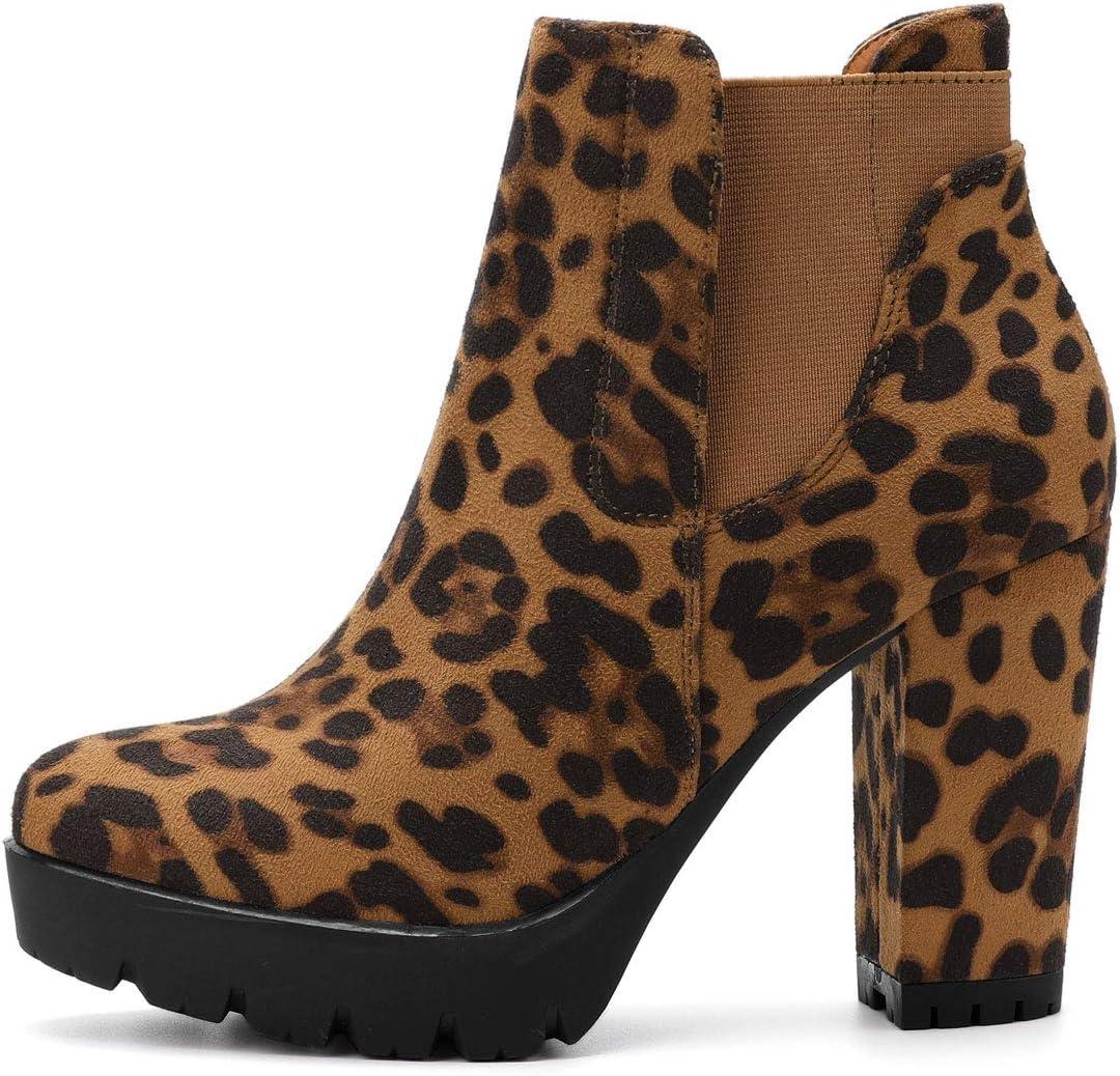 Allegra K Women's Chunky High Heel Platform Ankle Boots(Leopard)