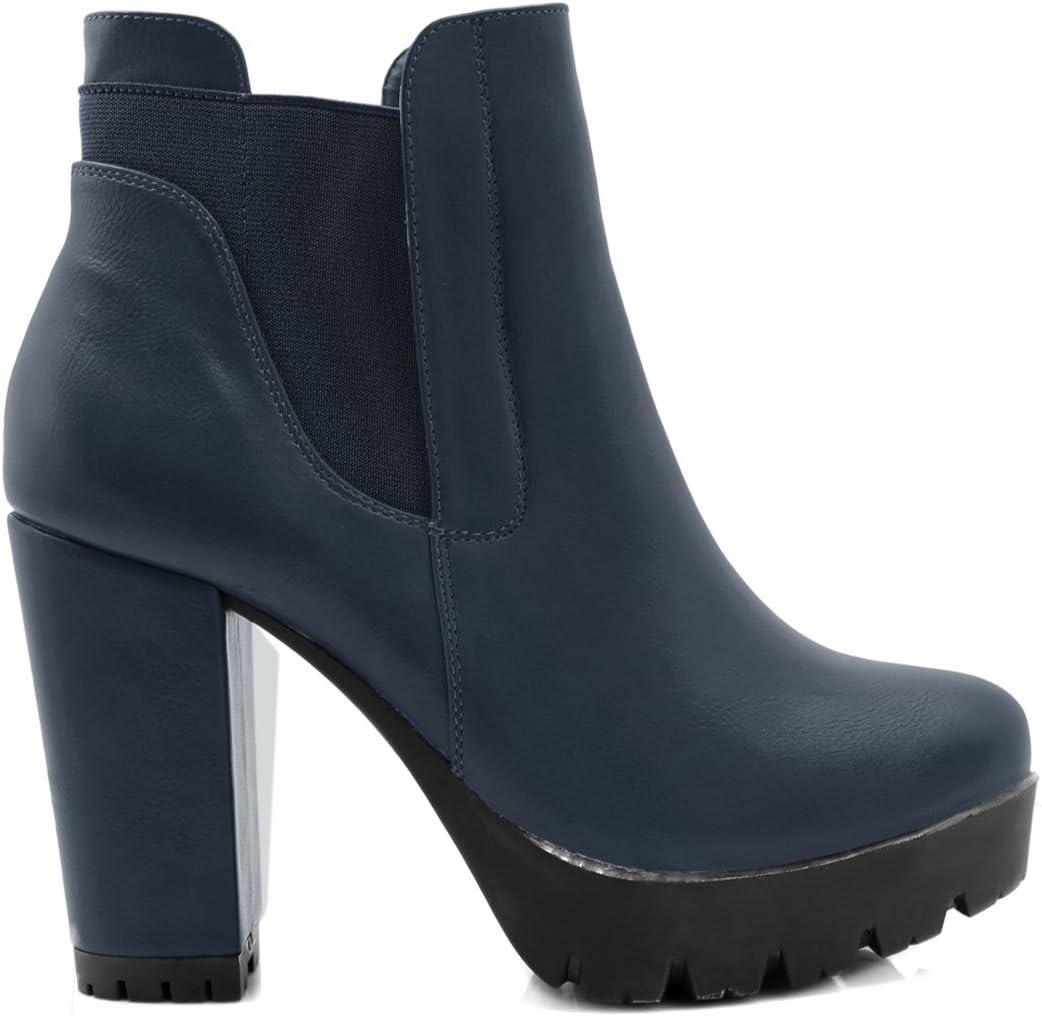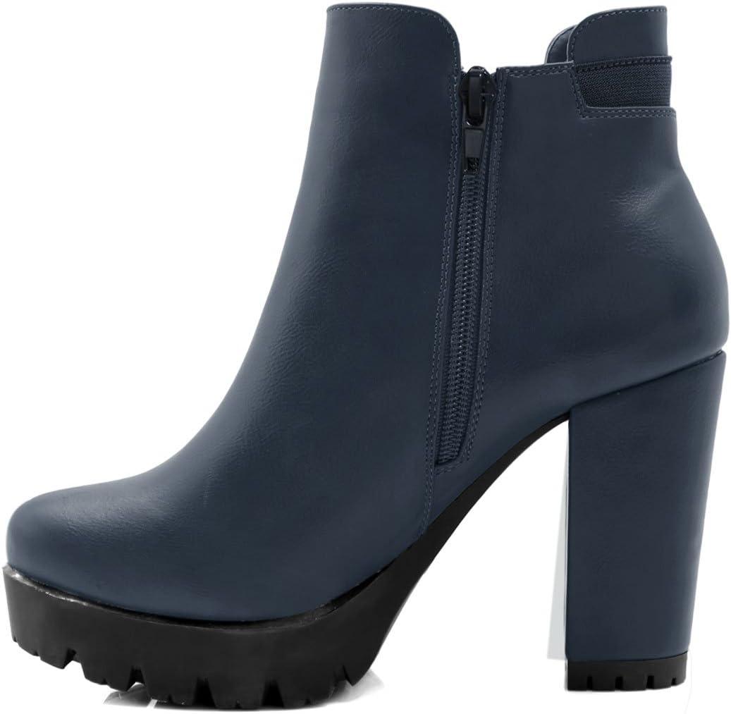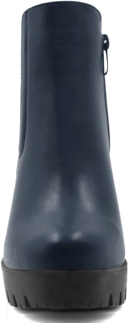 Allegra K Women's Chunky High Heel Platform Ankle Boots(Navy Blue)