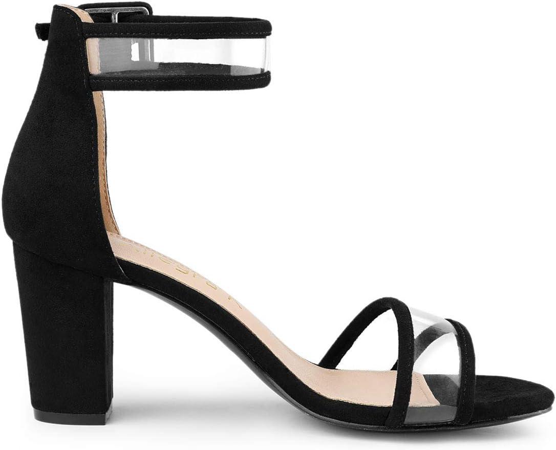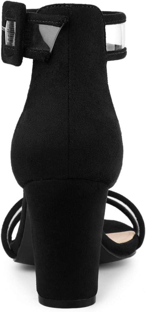 Allegra K Women's Clear Ankle Strap Chunky Heels Sandals(Black)