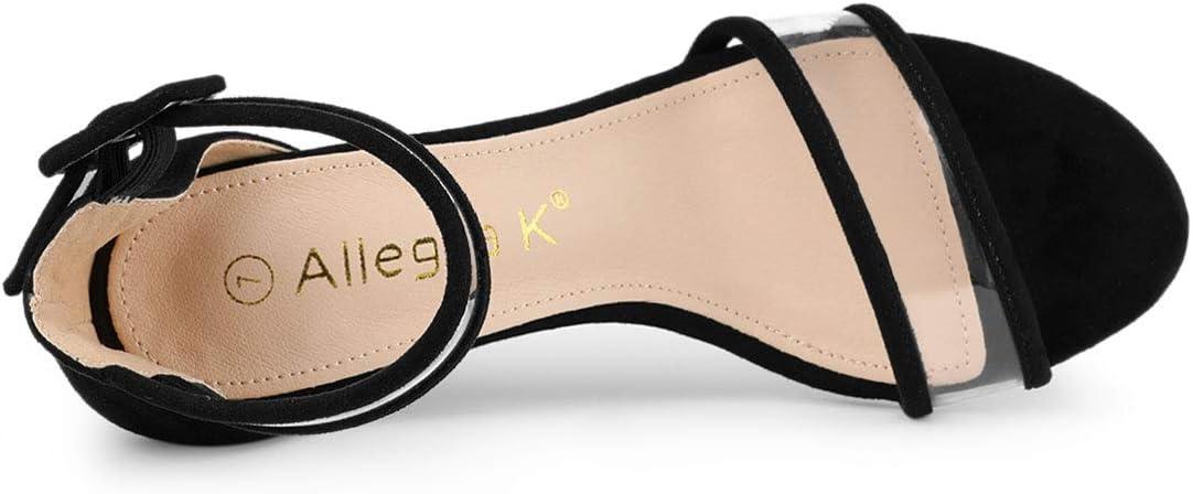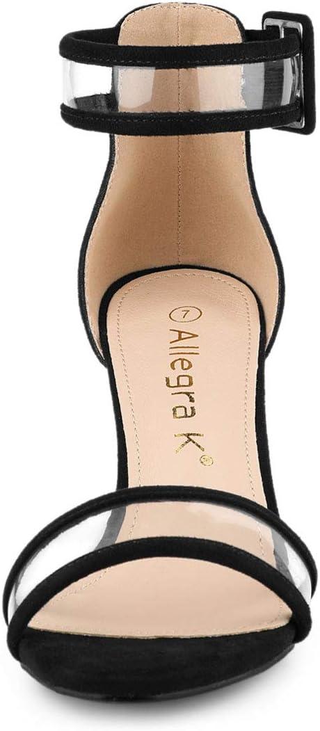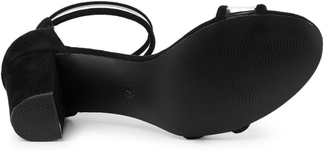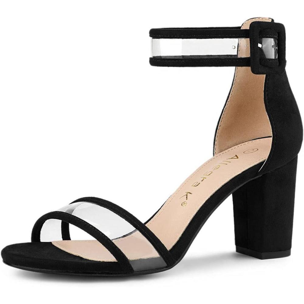 Allegra K Women’s Clear Ankle Strap Chunky Heels Sandals(Black)