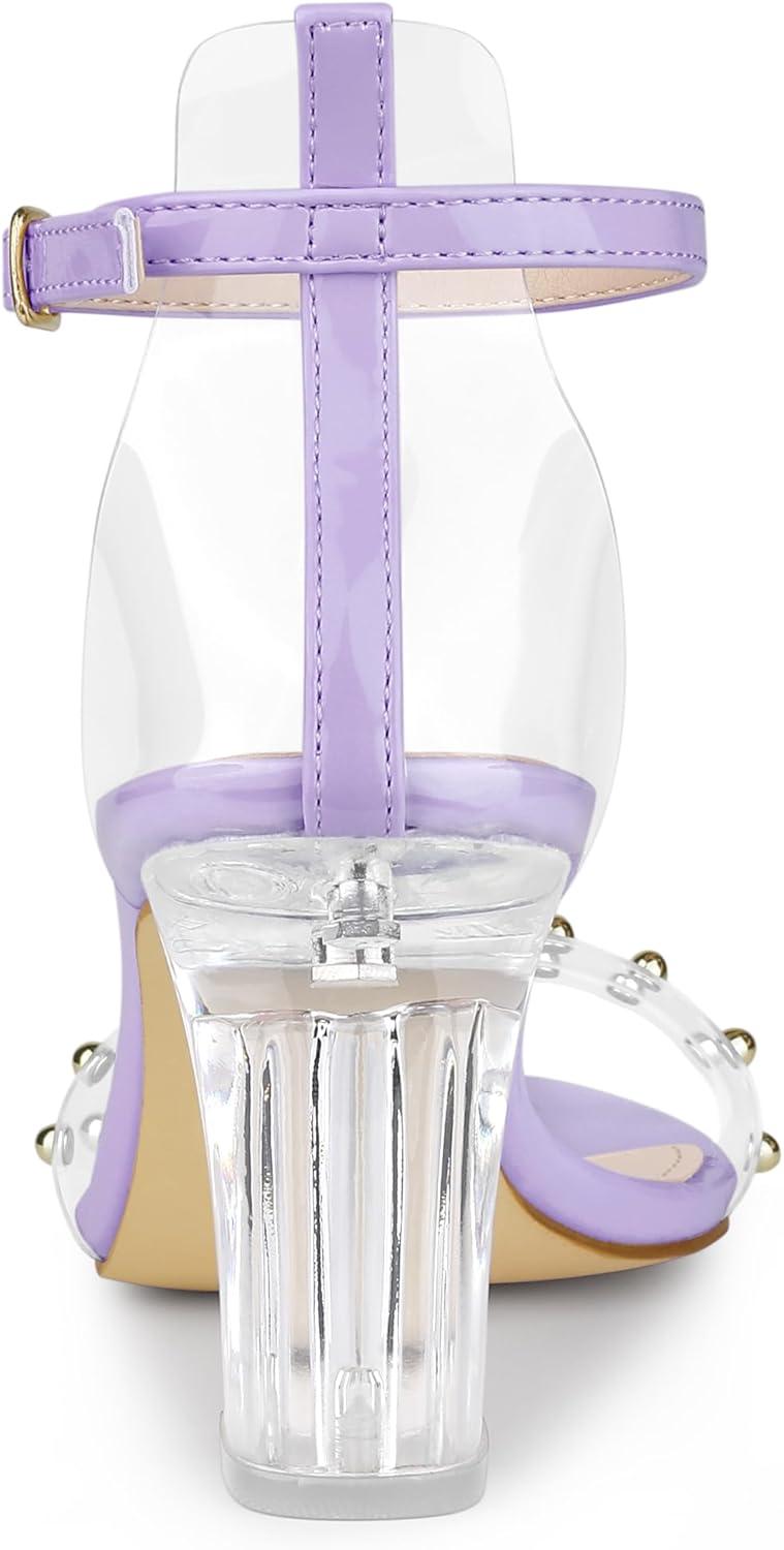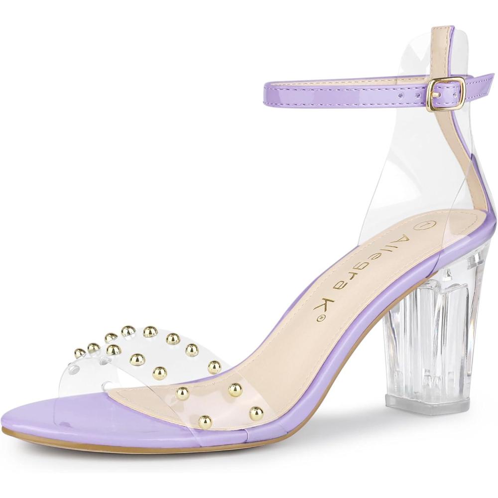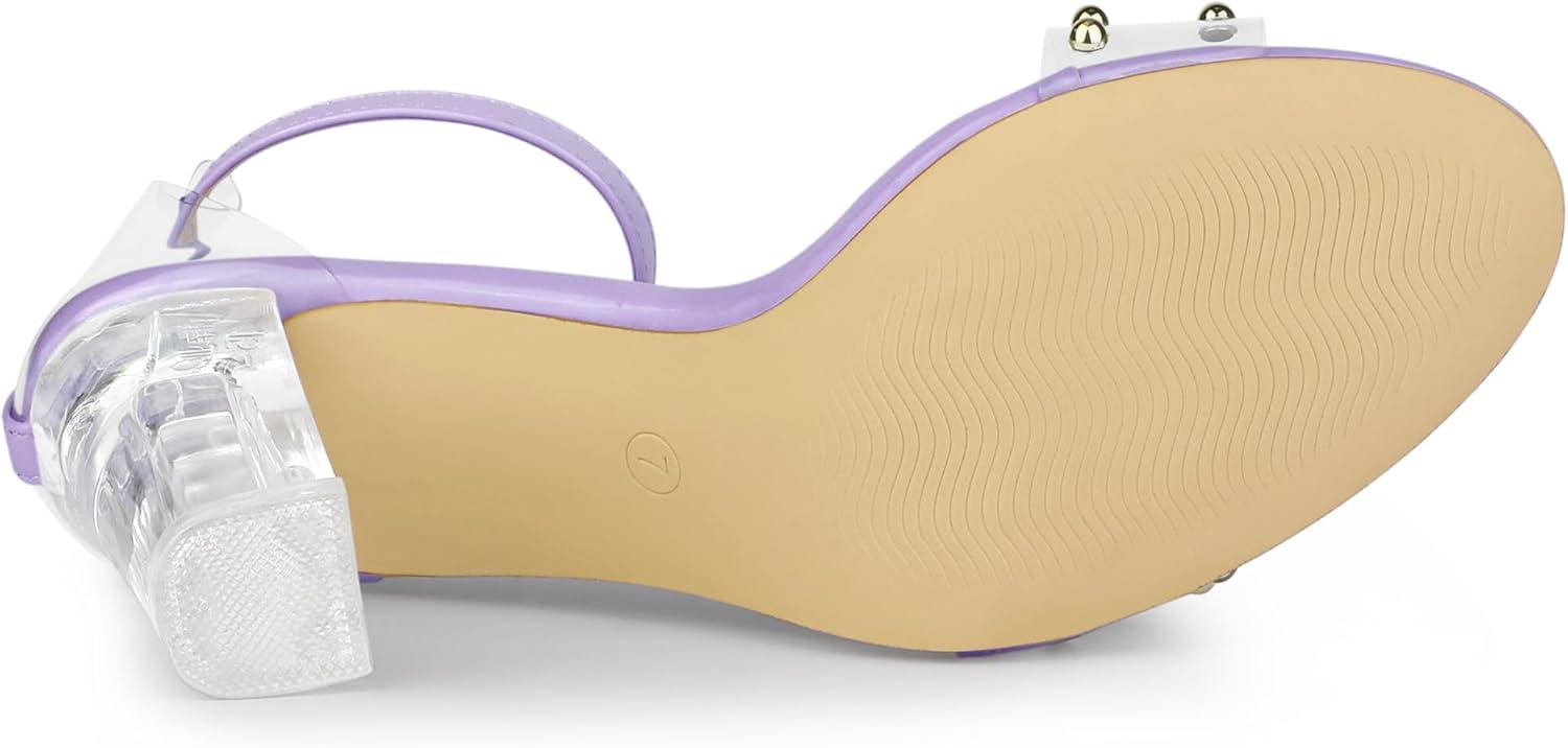 Allegra K Women’s Clear Block Heel Ankle Strap Heeled Sandals(Light Purple)