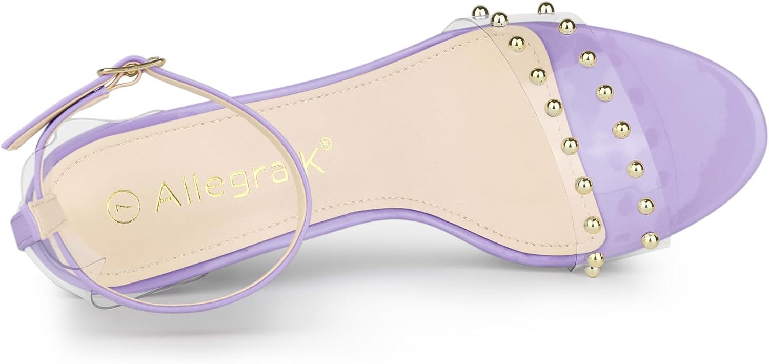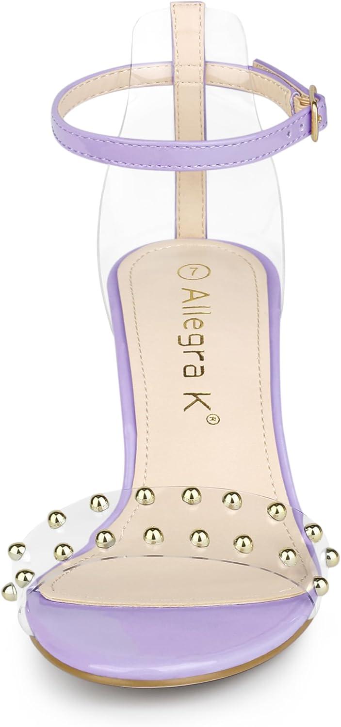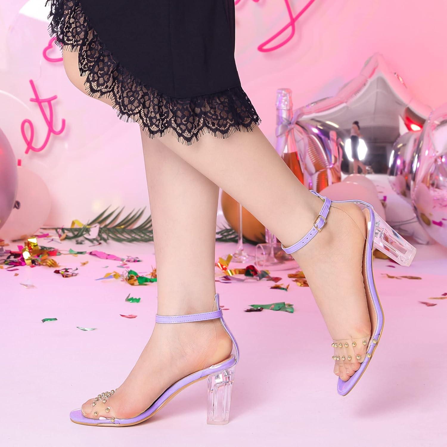 Allegra K Women’s Clear Block Heel Ankle Strap Heeled Sandals(Light Purple)