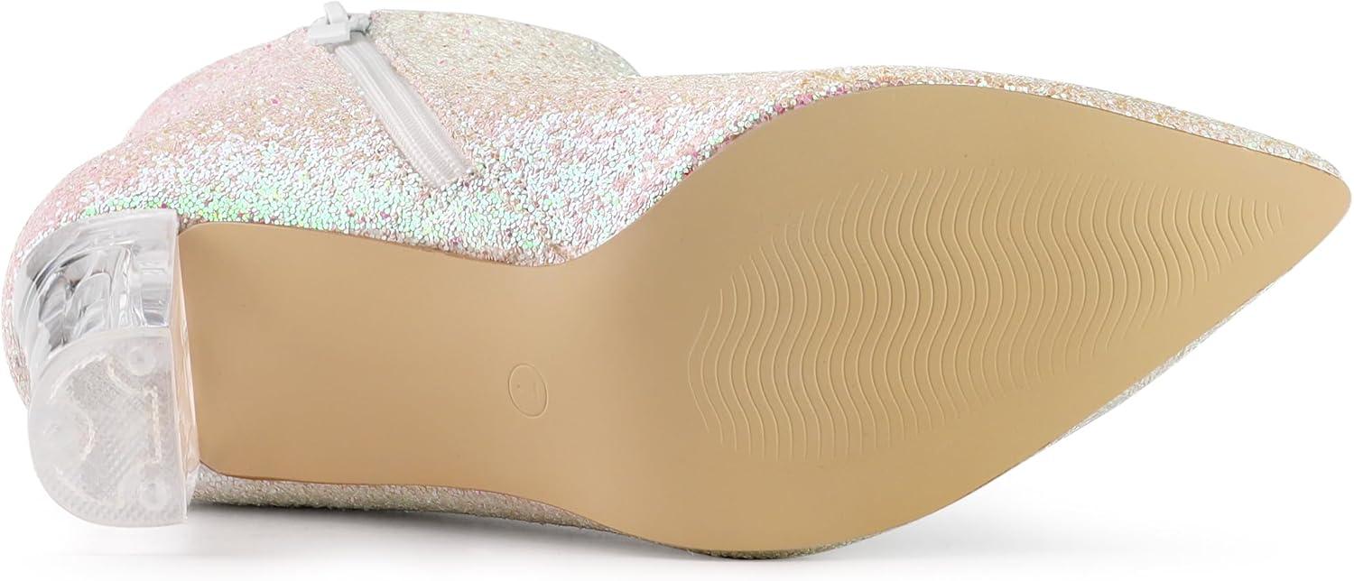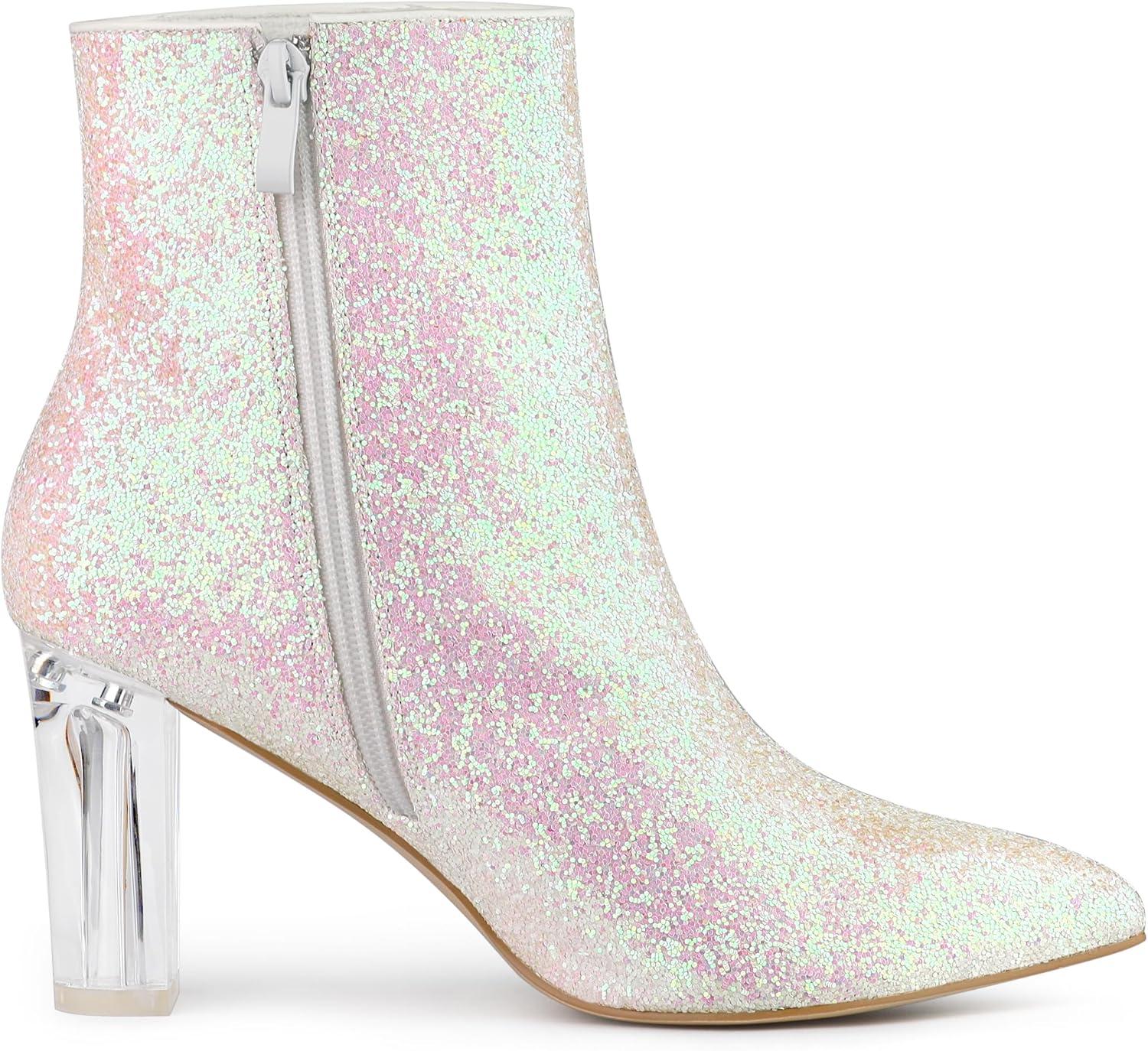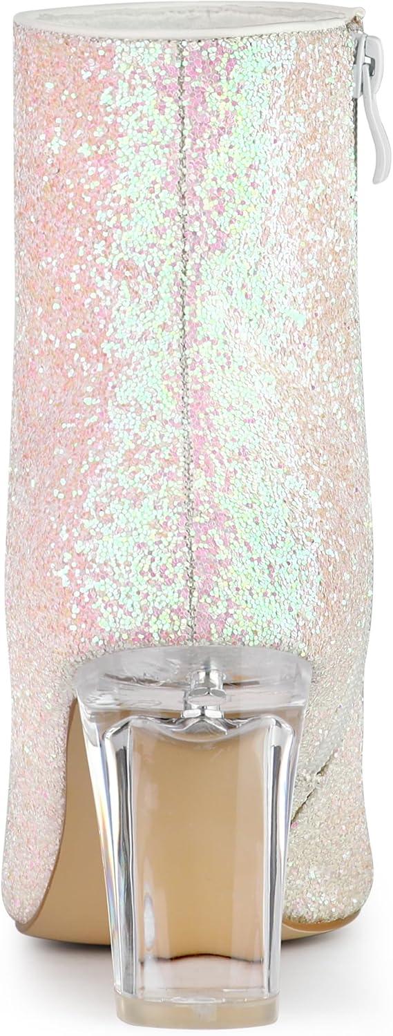 Allegra K Women’s Clear Block Heel Glitter Ankle Boots(Bling White)