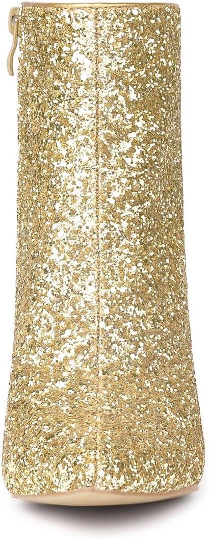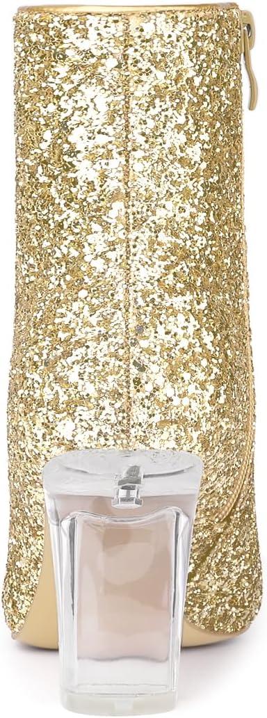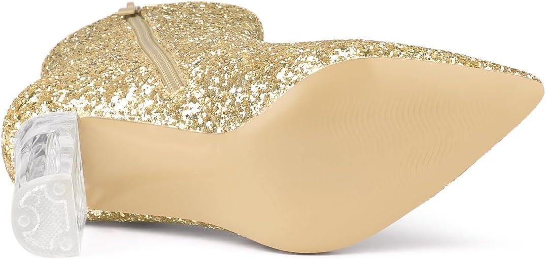Allegra K Women’s Clear Block Heel Glitter Ankle Boots(Gold)