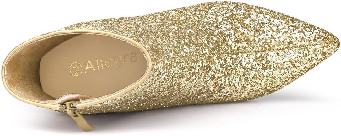 Allegra K Women's Clear Block Heel Glitter Ankle Boots(Gold)