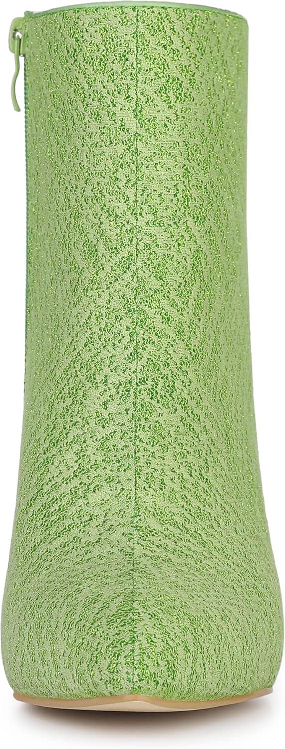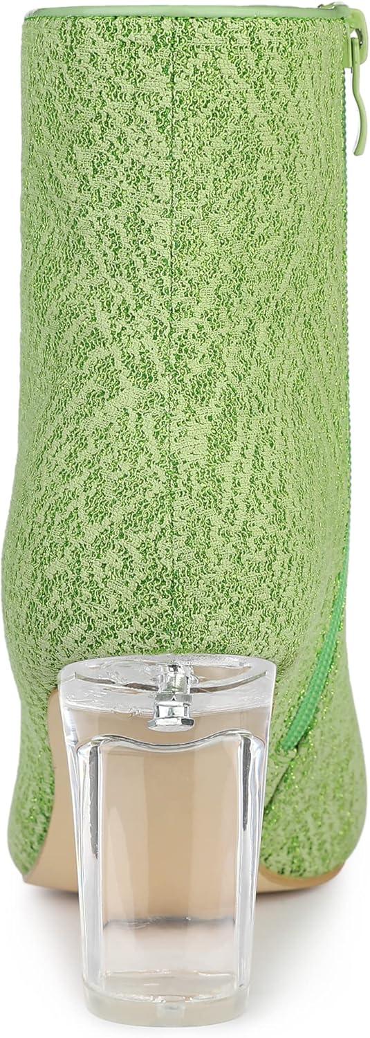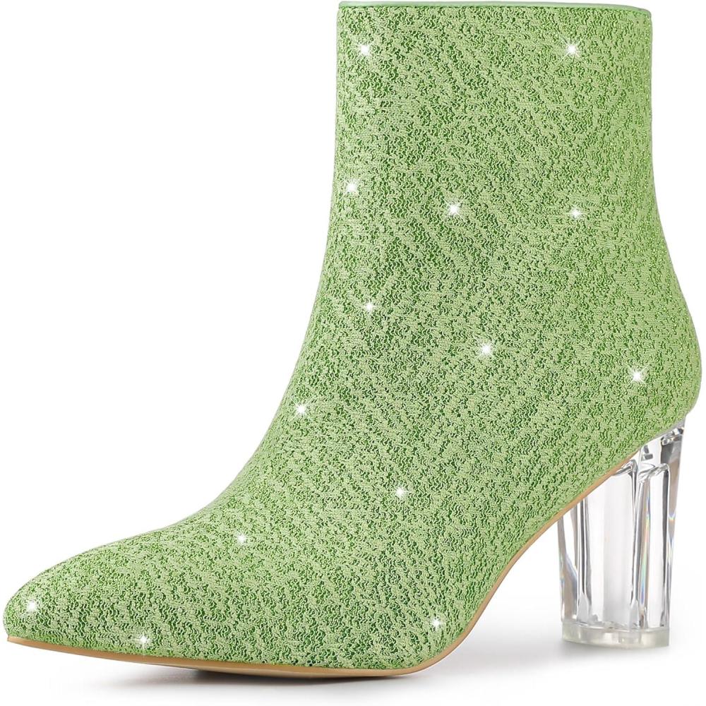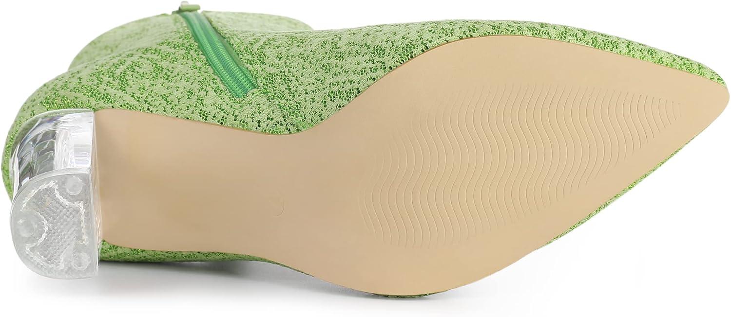 Allegra K Women’s Clear Block Heel Glitter Ankle Boots(Green)