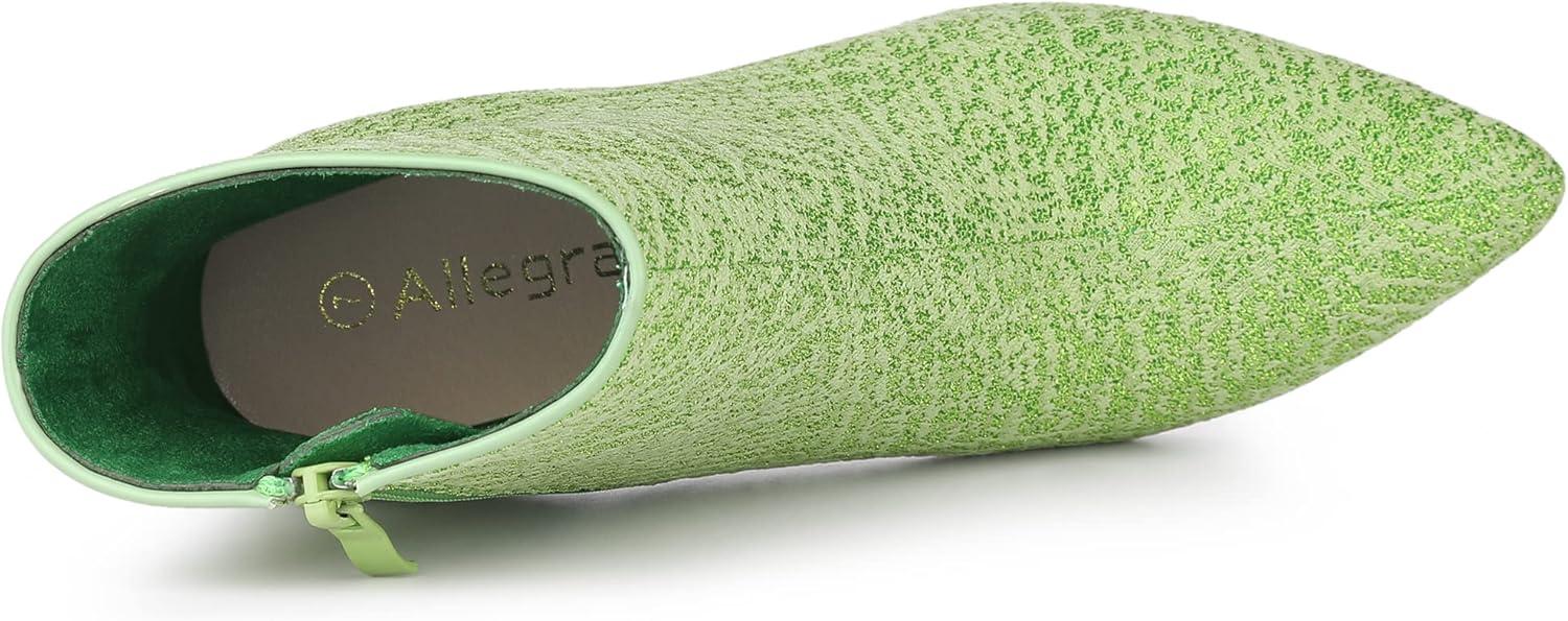 Allegra K Women's Clear Block Heel Glitter Ankle Boots(Green)