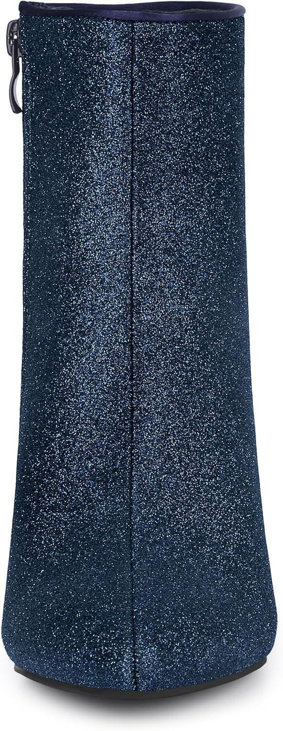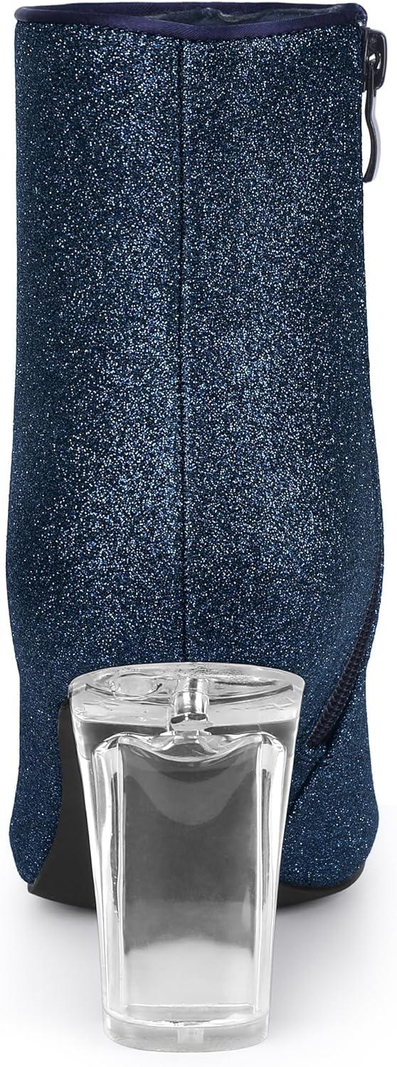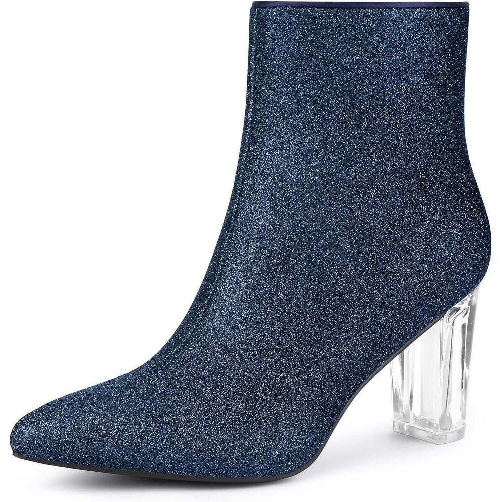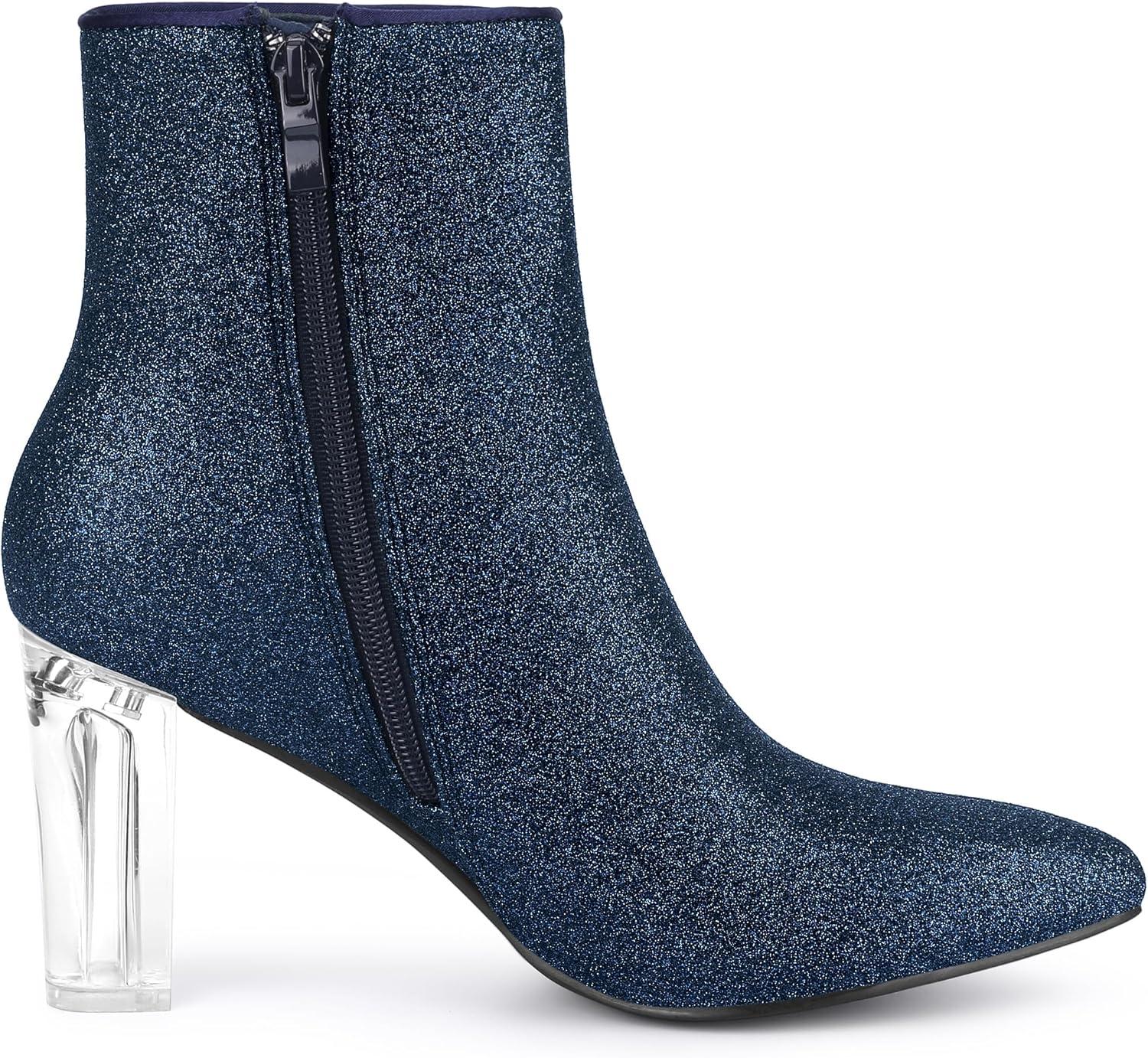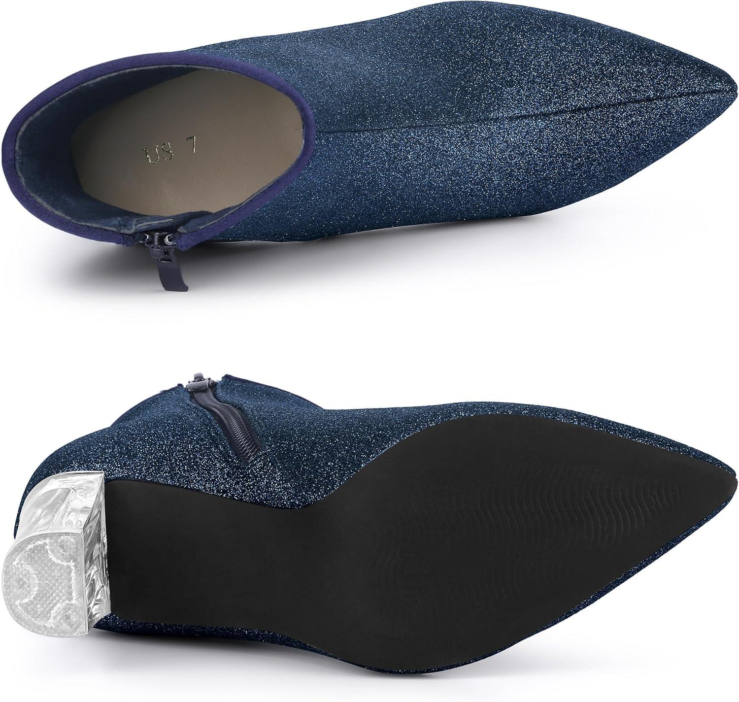 Allegra K Women’s Clear Block Heel Glitter Ankle Boots(Navy Blue)
