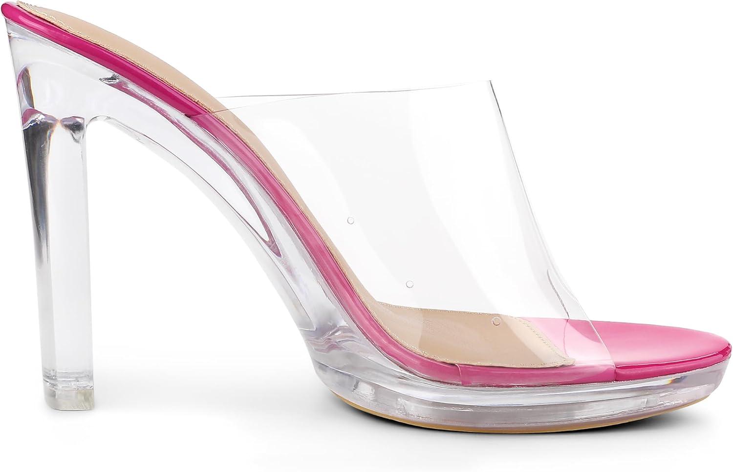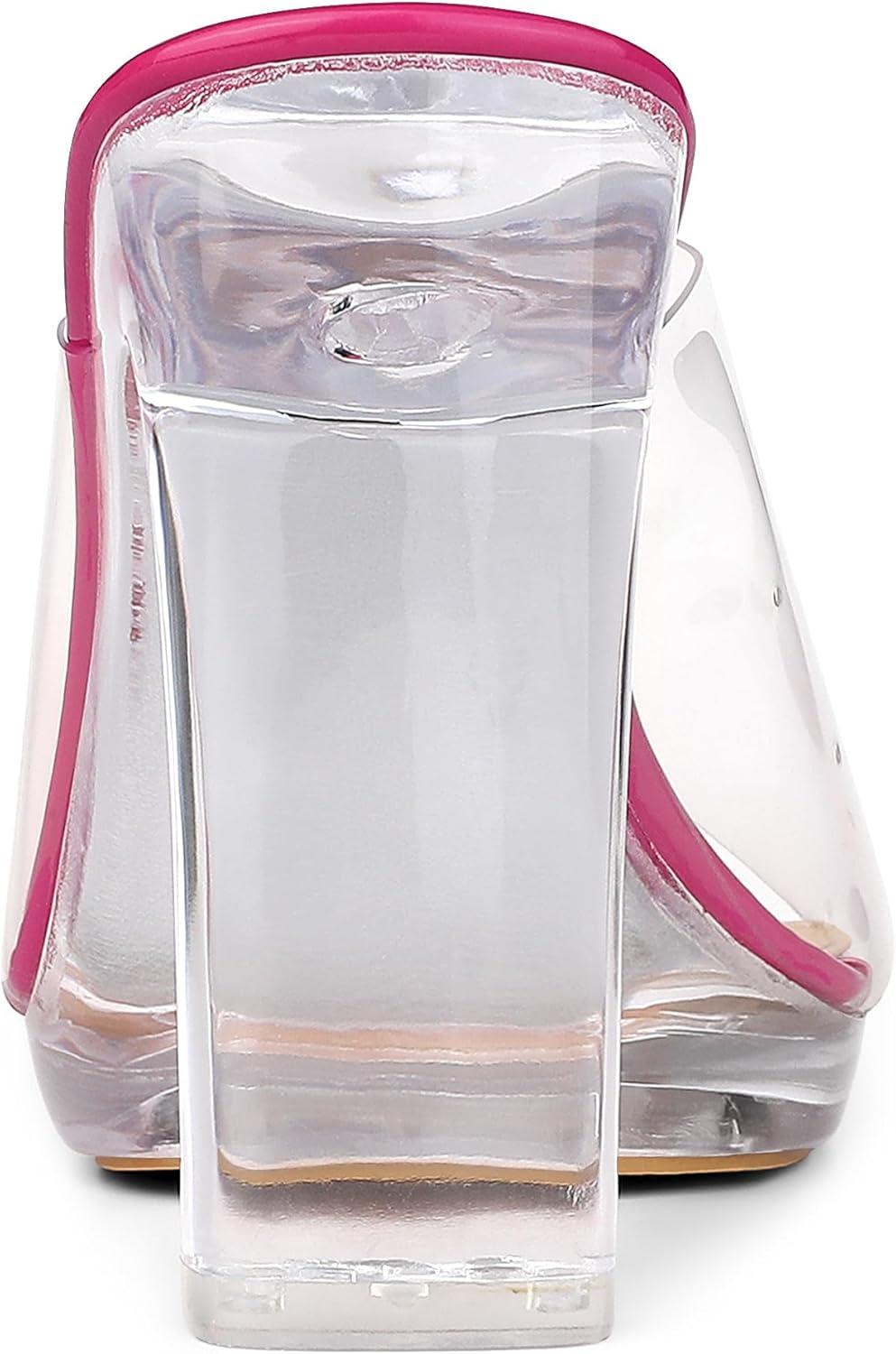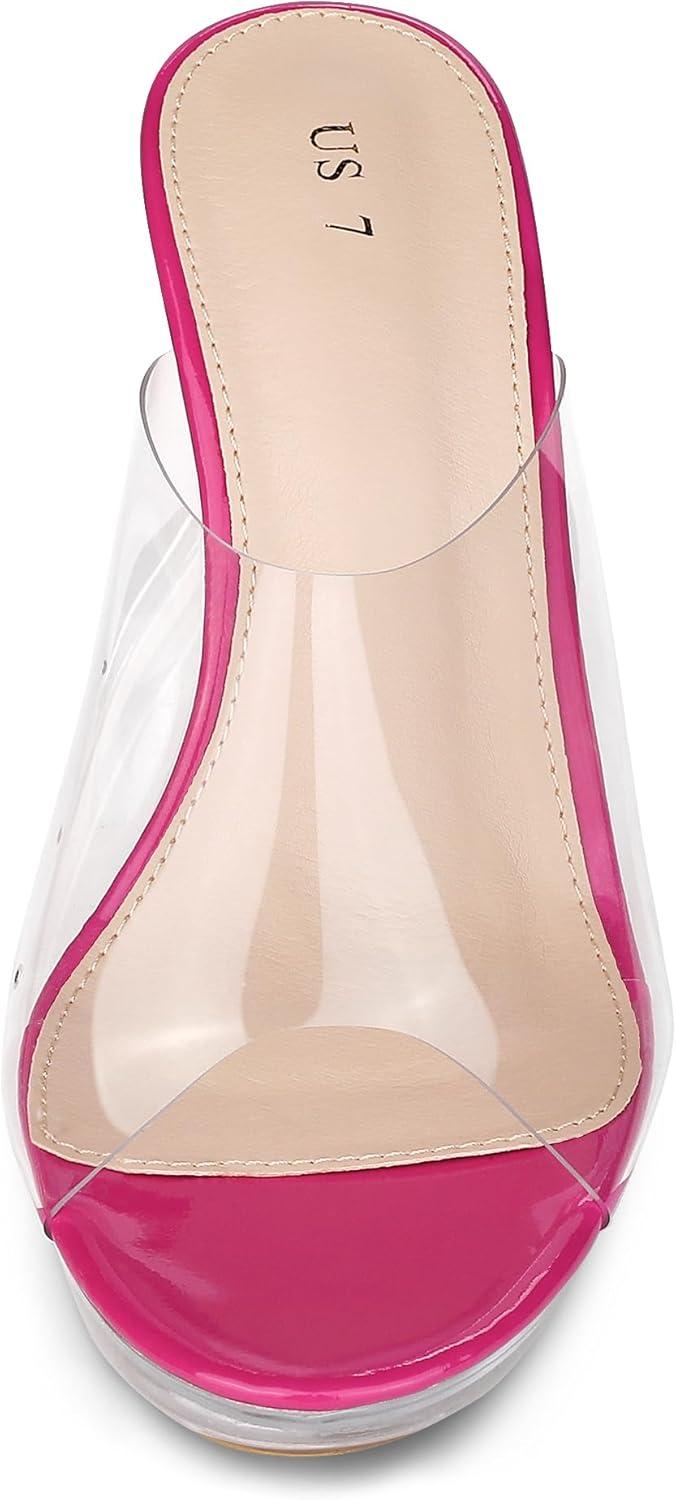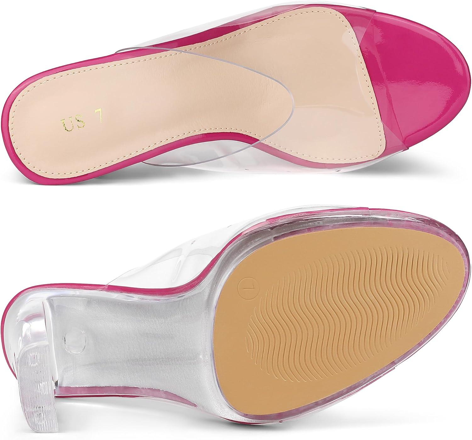 Allegra K Women's Clear Heel Platform Open Toe Chunky Heels Slides Sandals(Hot Pink-pu)