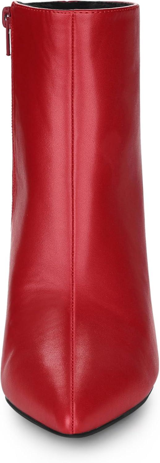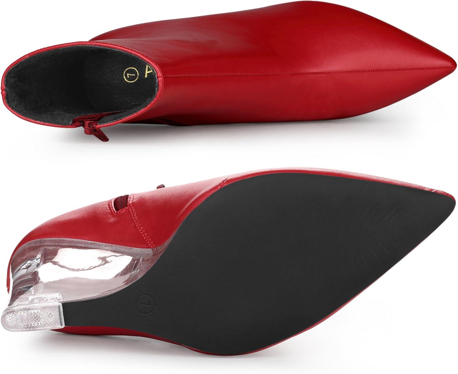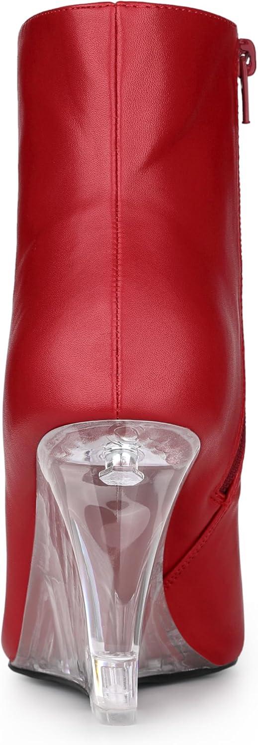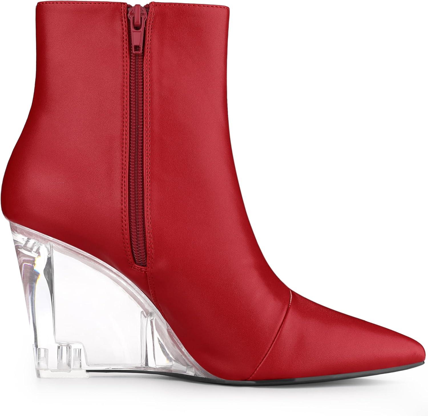 Allegra K Women’s Clear Heel Pointed Toe Wedge Heels Ankle Boots(Red)