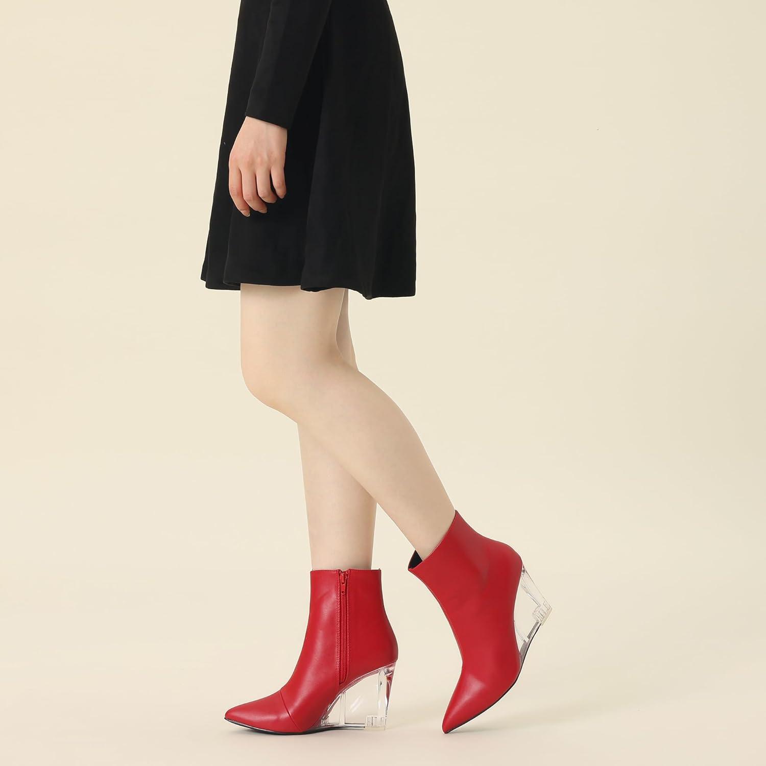 Allegra K Women's Clear Heel Pointed Toe Wedge Heels Ankle Boots(Red)
