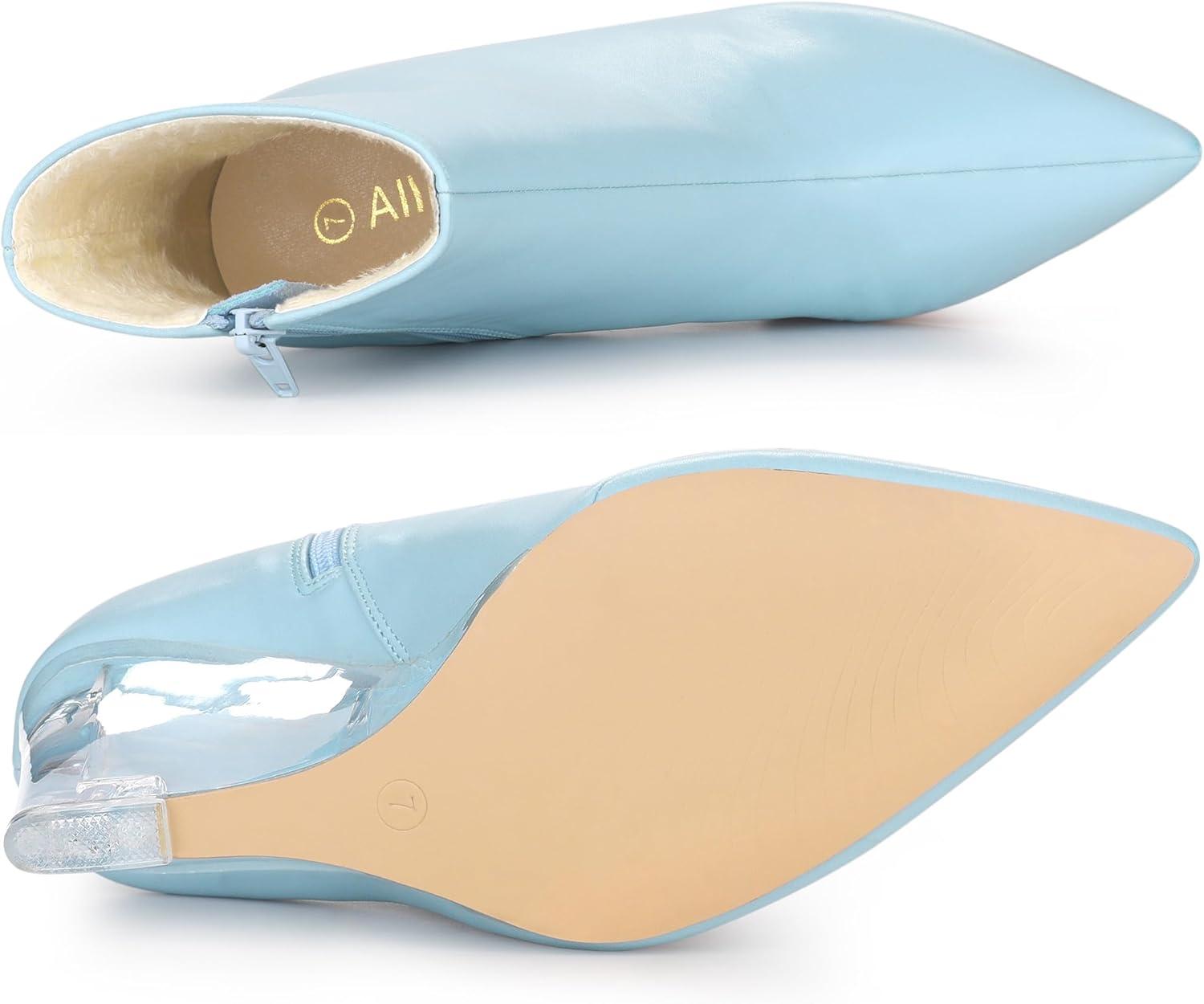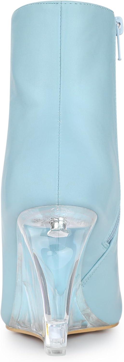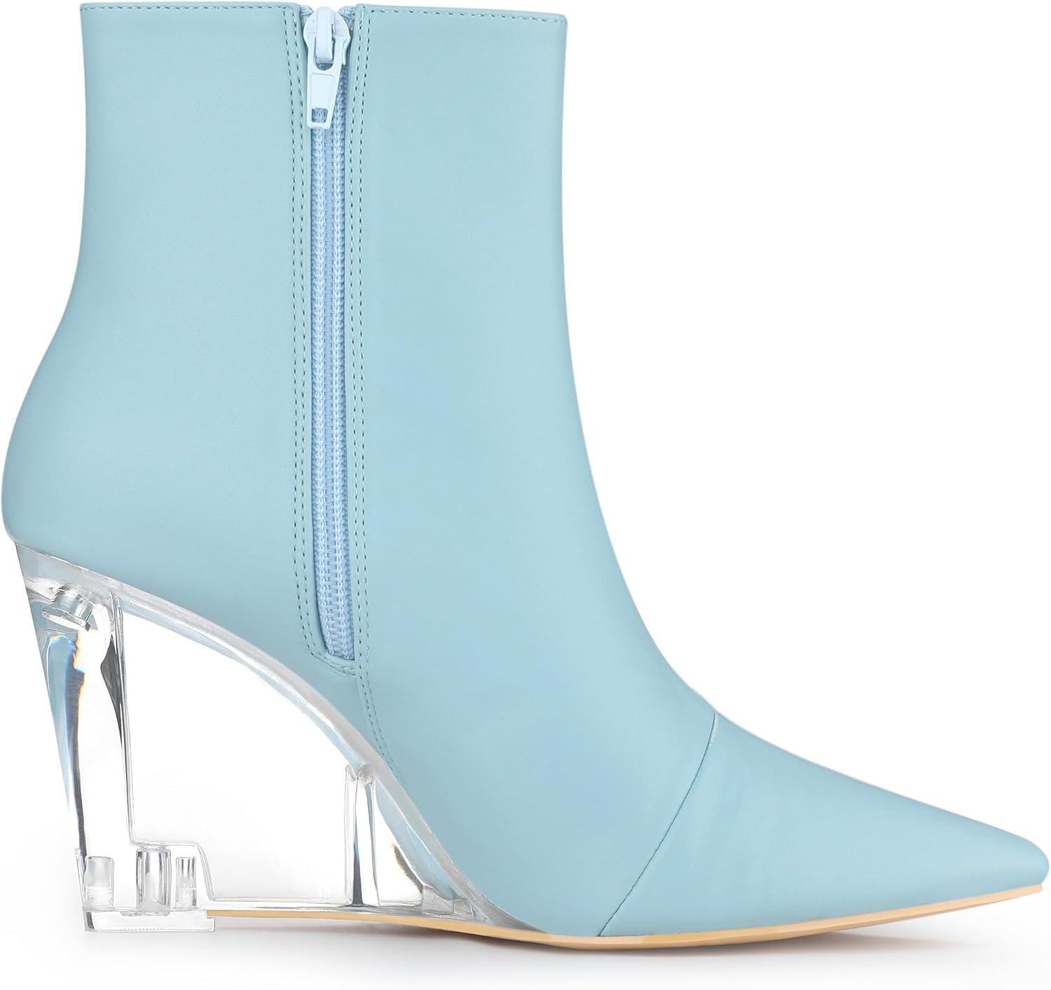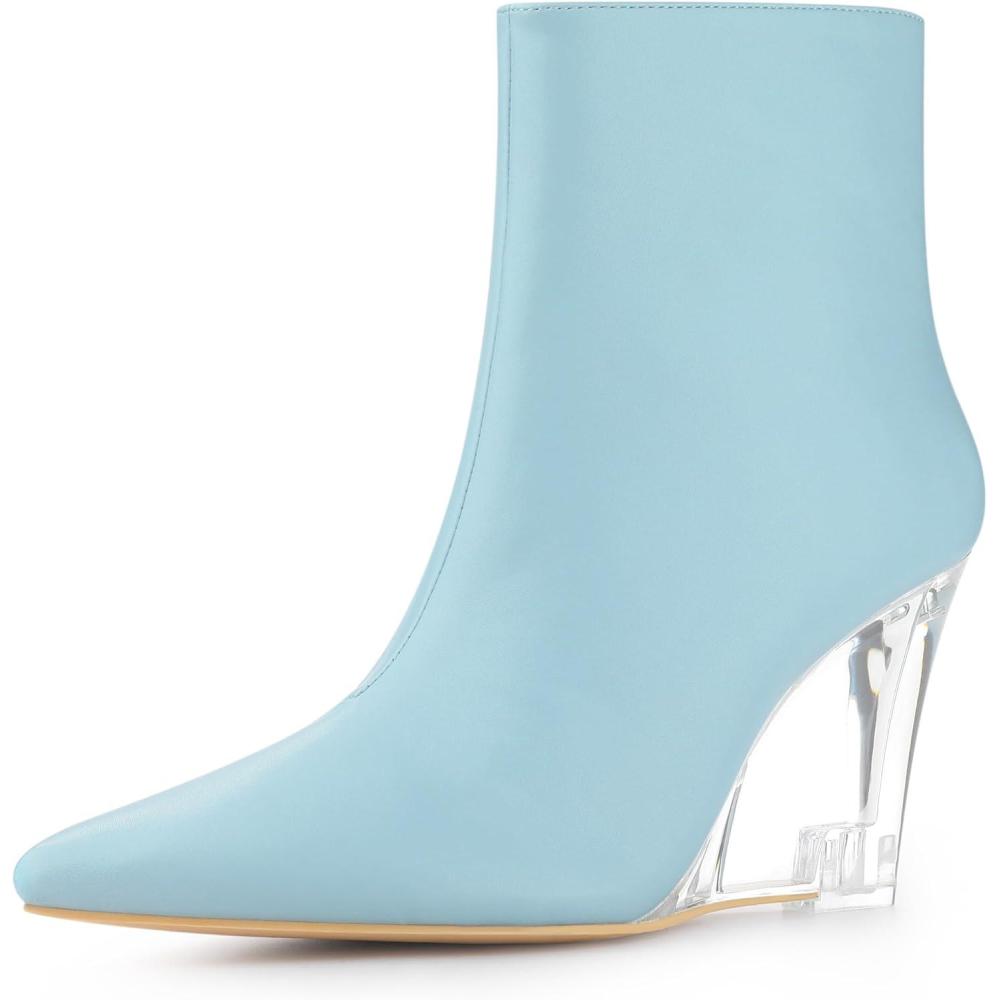 Allegra K Women’s Clear Heel Pointed Toe Wedge Heels Ankle Boots(Sky Blue)