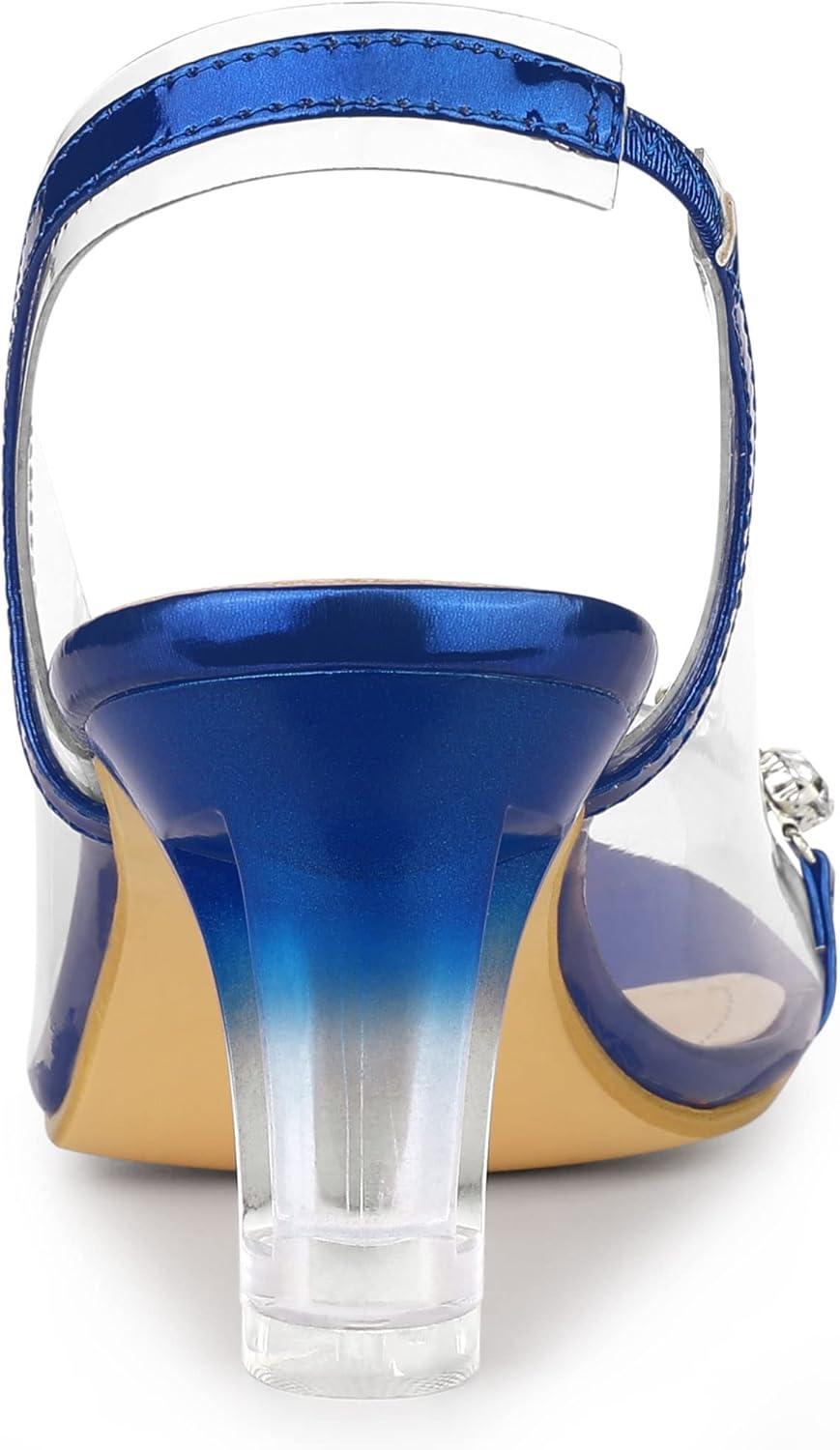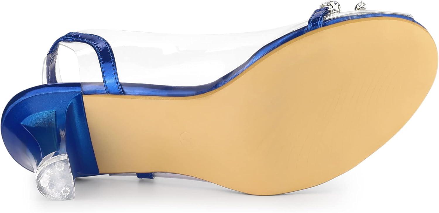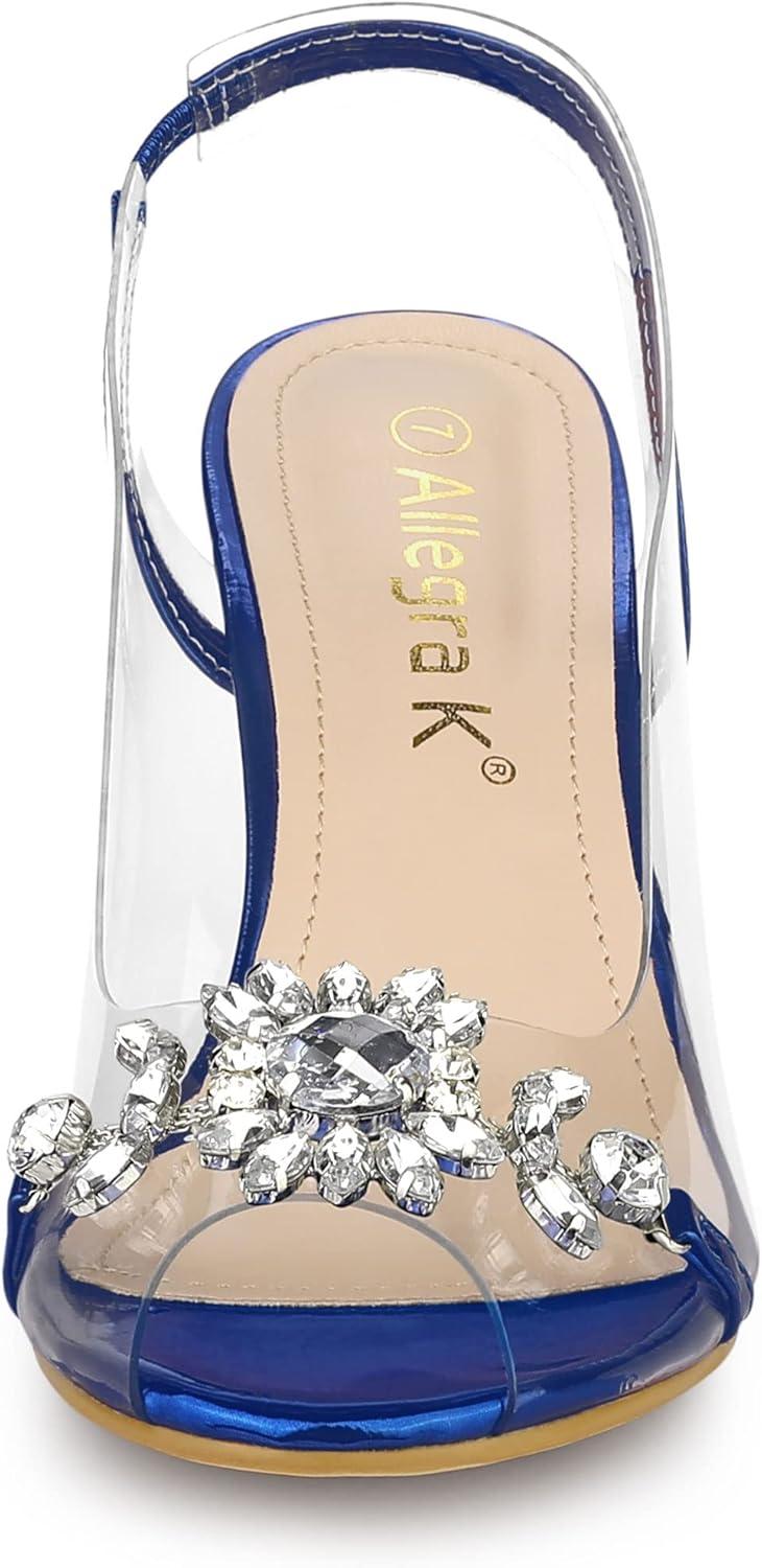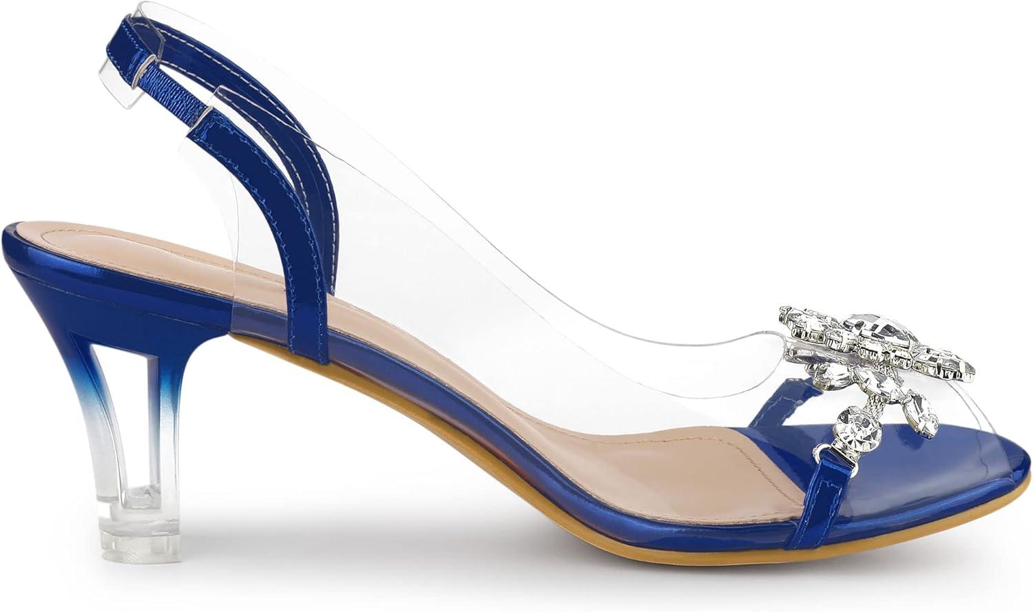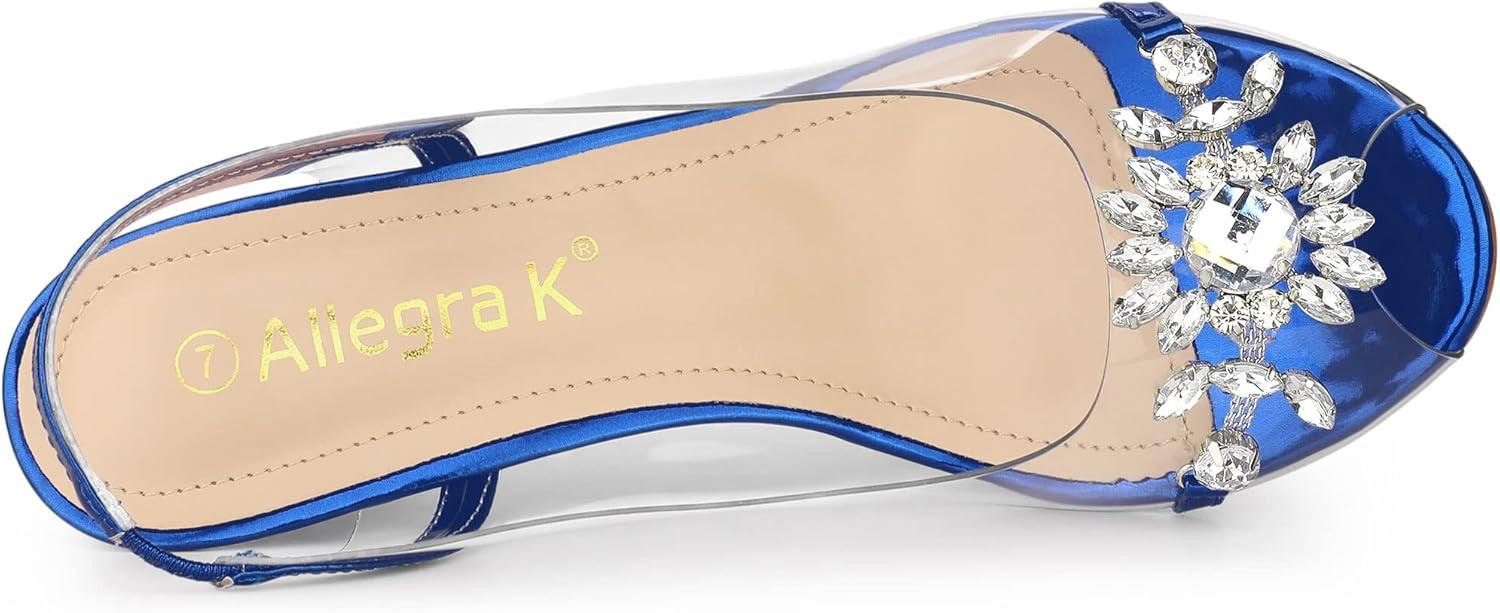 Allegra K Women’s Clear Slingback Flower Rhinestone Peep Toe Heels Sandals(Blue)