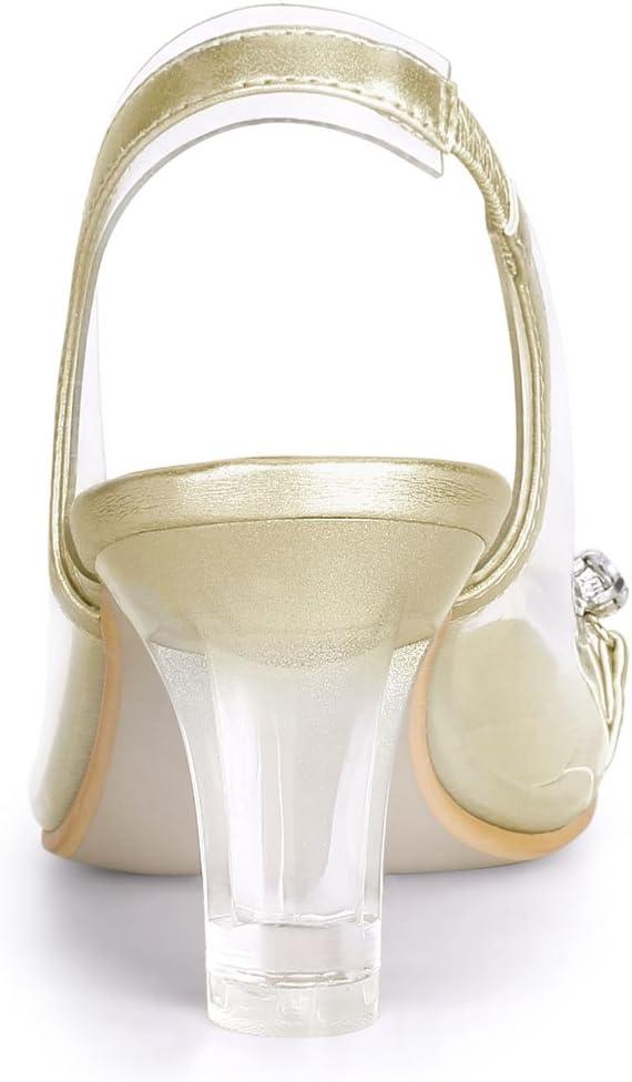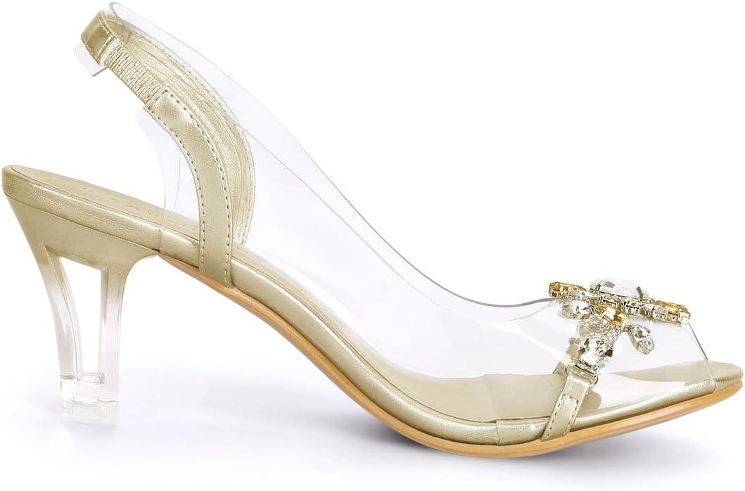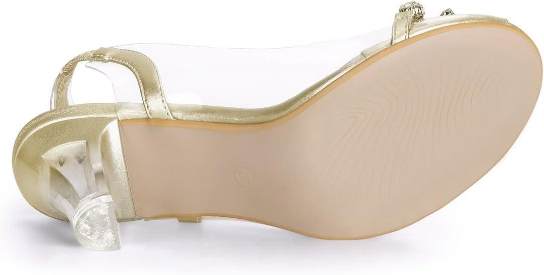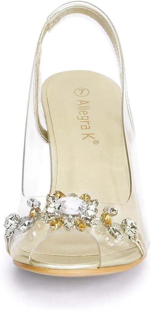 Allegra K Women’s Clear Slingback Flower Rhinestone Peep Toe Heels Sandals(Gold)