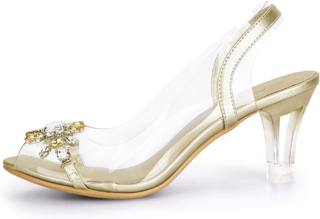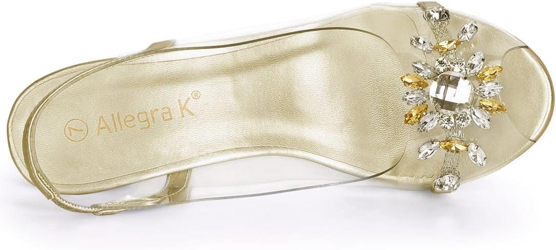 Allegra K Women's Clear Slingback Flower Rhinestone Peep Toe Heels Sandals(Gold)