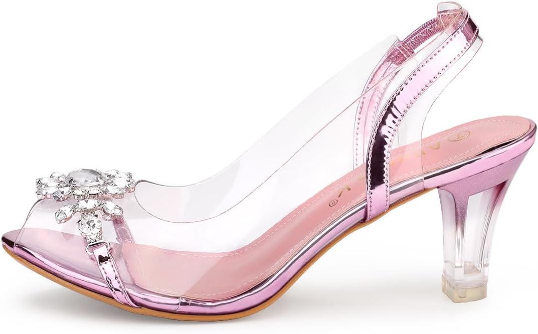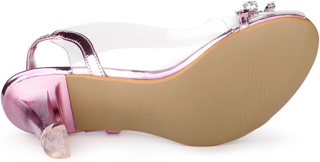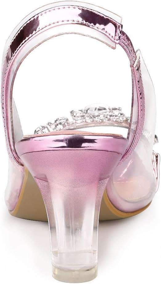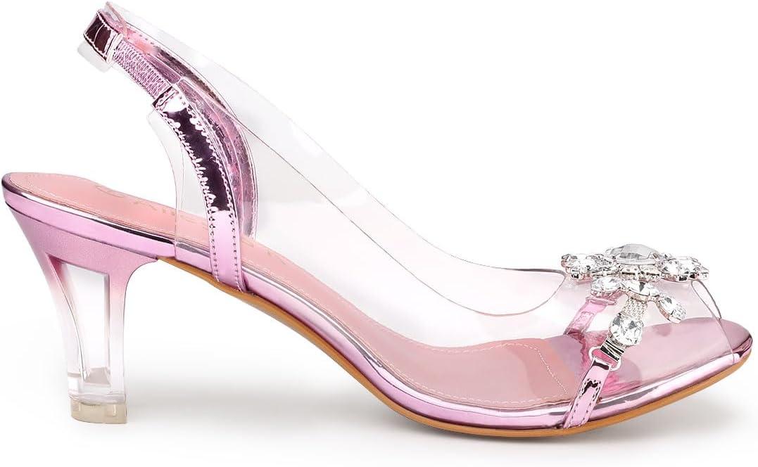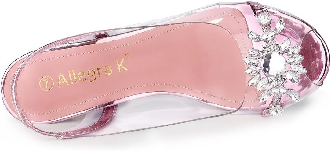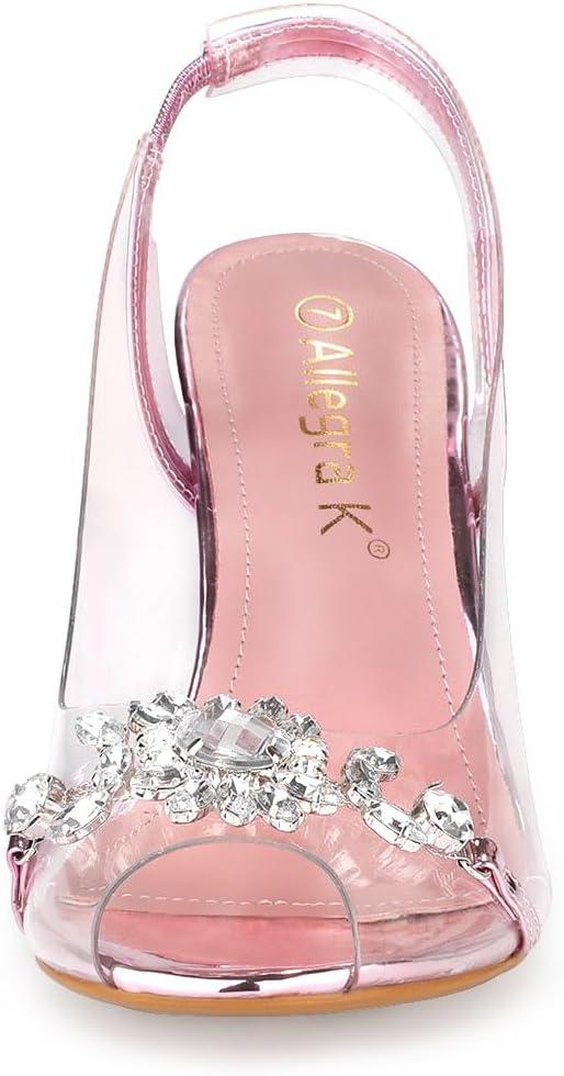 Allegra K Women’s Clear Slingback Flower Rhinestone Peep Toe Heels Sandals(Pink)