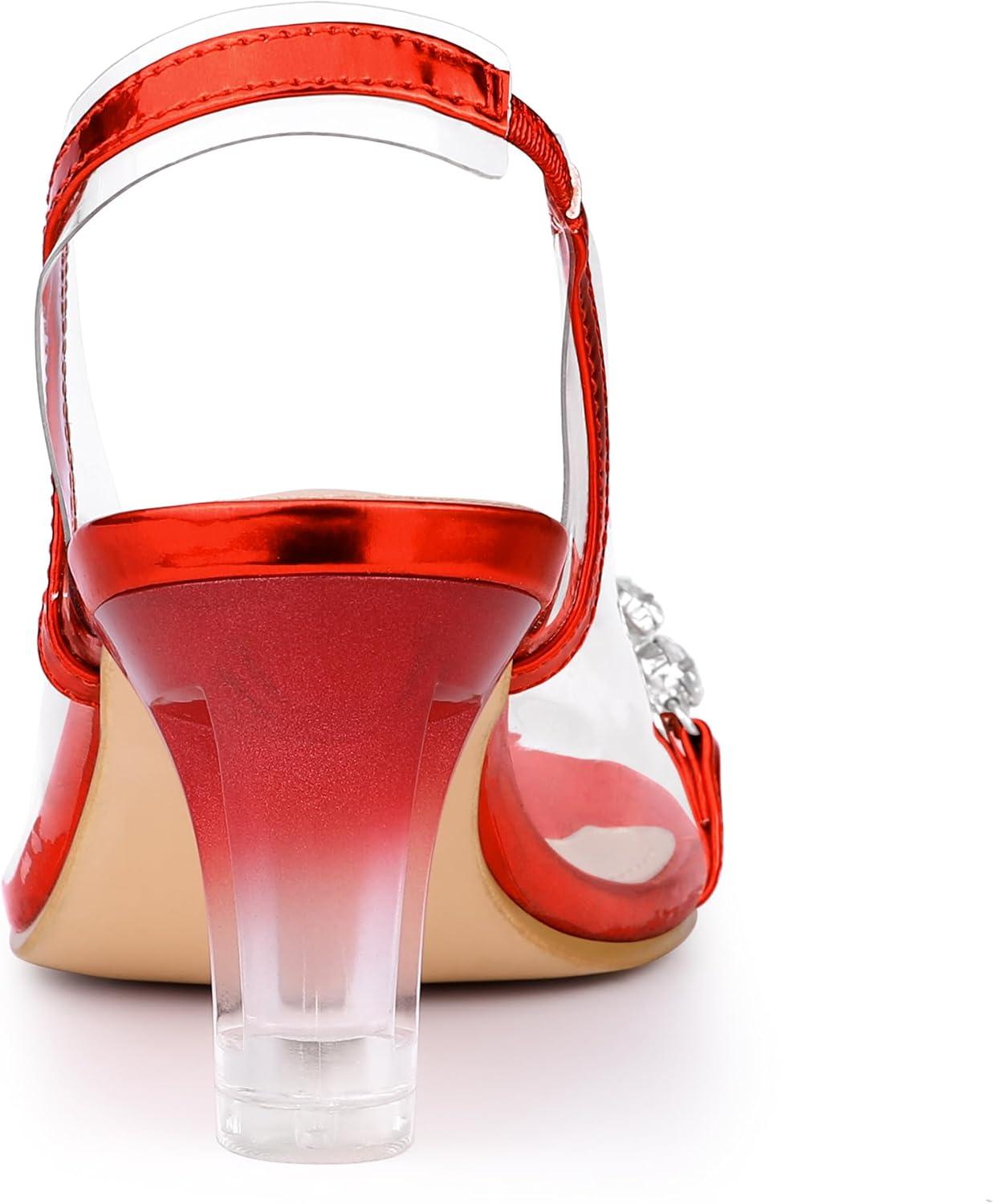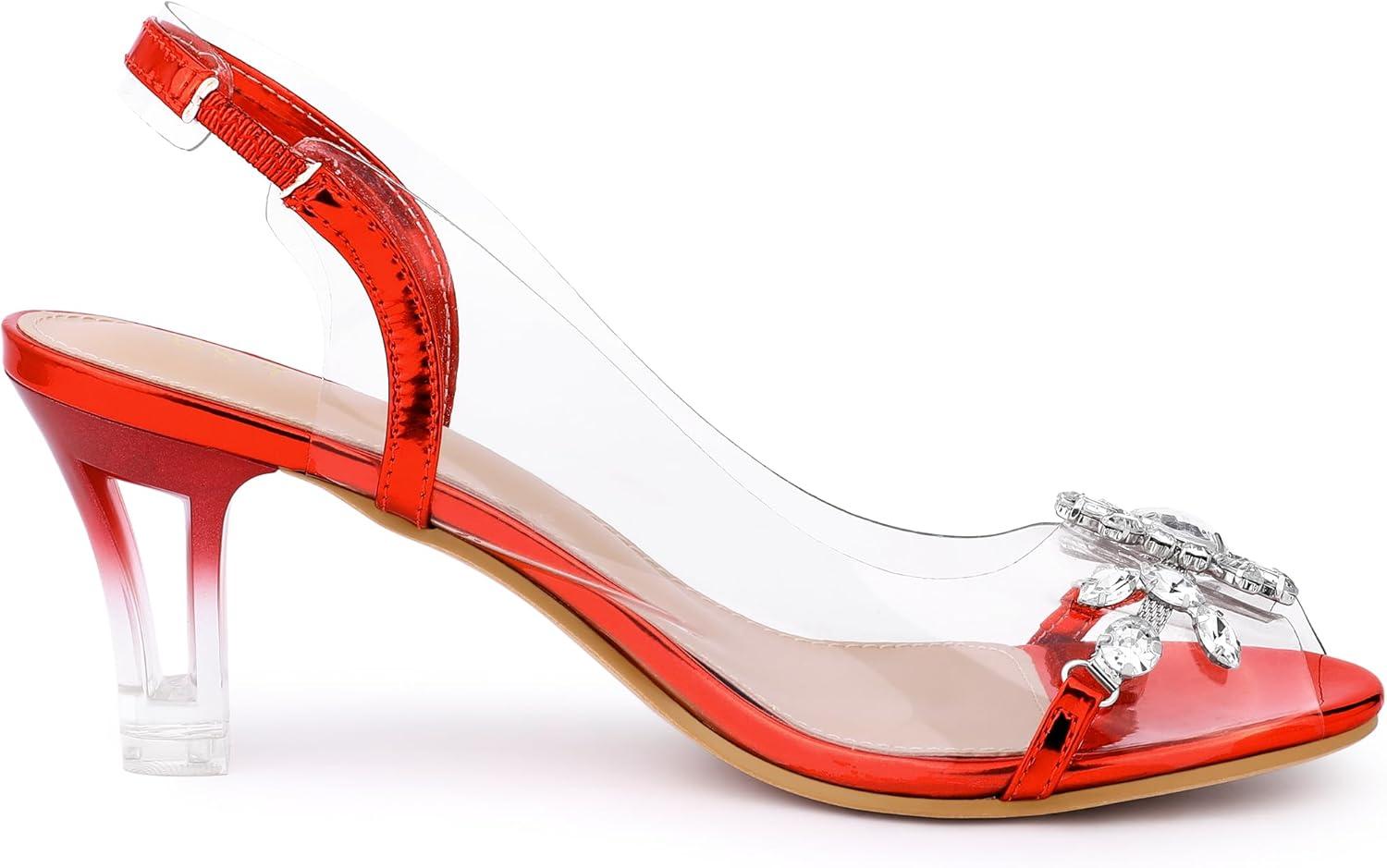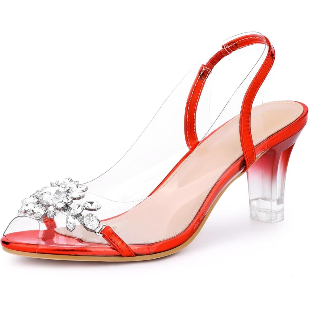 Allegra K Women’s Clear Slingback Flower Rhinestone Peep Toe Heels Sandals(Red)