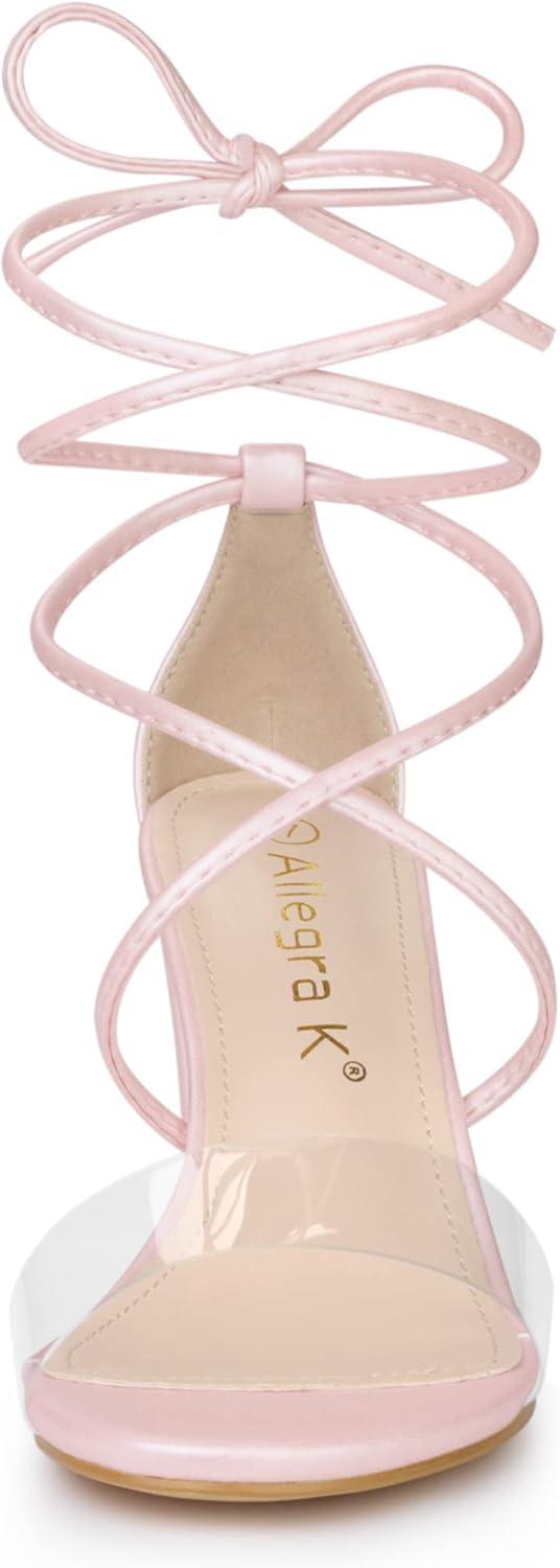 The soft Lace-Up Heels satisfy your craving for an elegant look that's absolutely trend-worthy! The clear strap forms a slender toe strap while soft laces (finished with comfortable aglets) loop through a sturdy heel cup, then wrap and tie around the ankle.