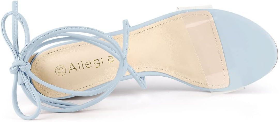 Allegra K Women's Clear Strap Block Heels Lace Up Heels Sandals(Blue)