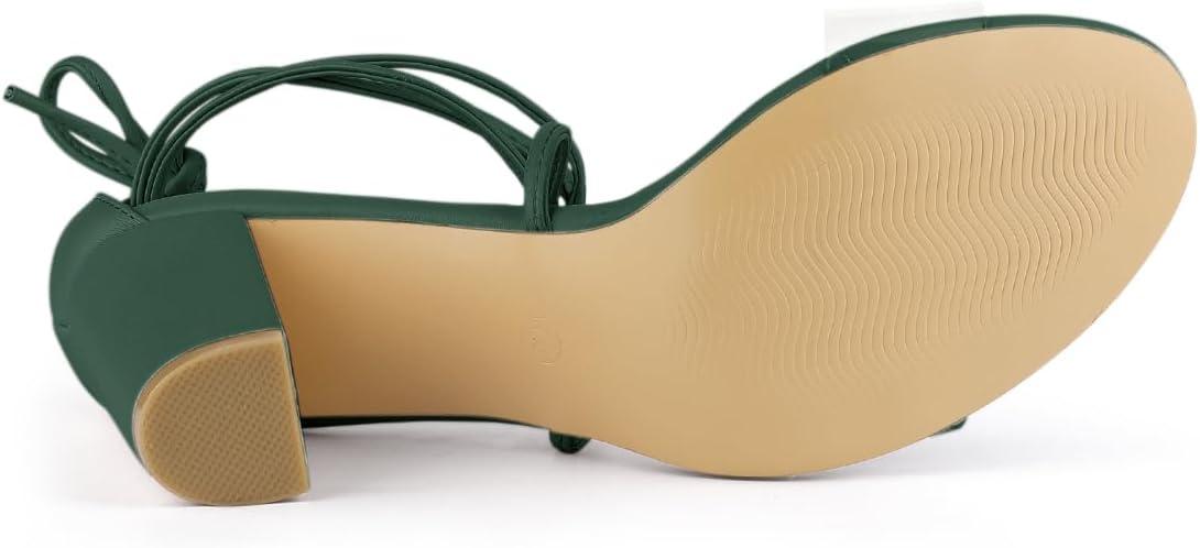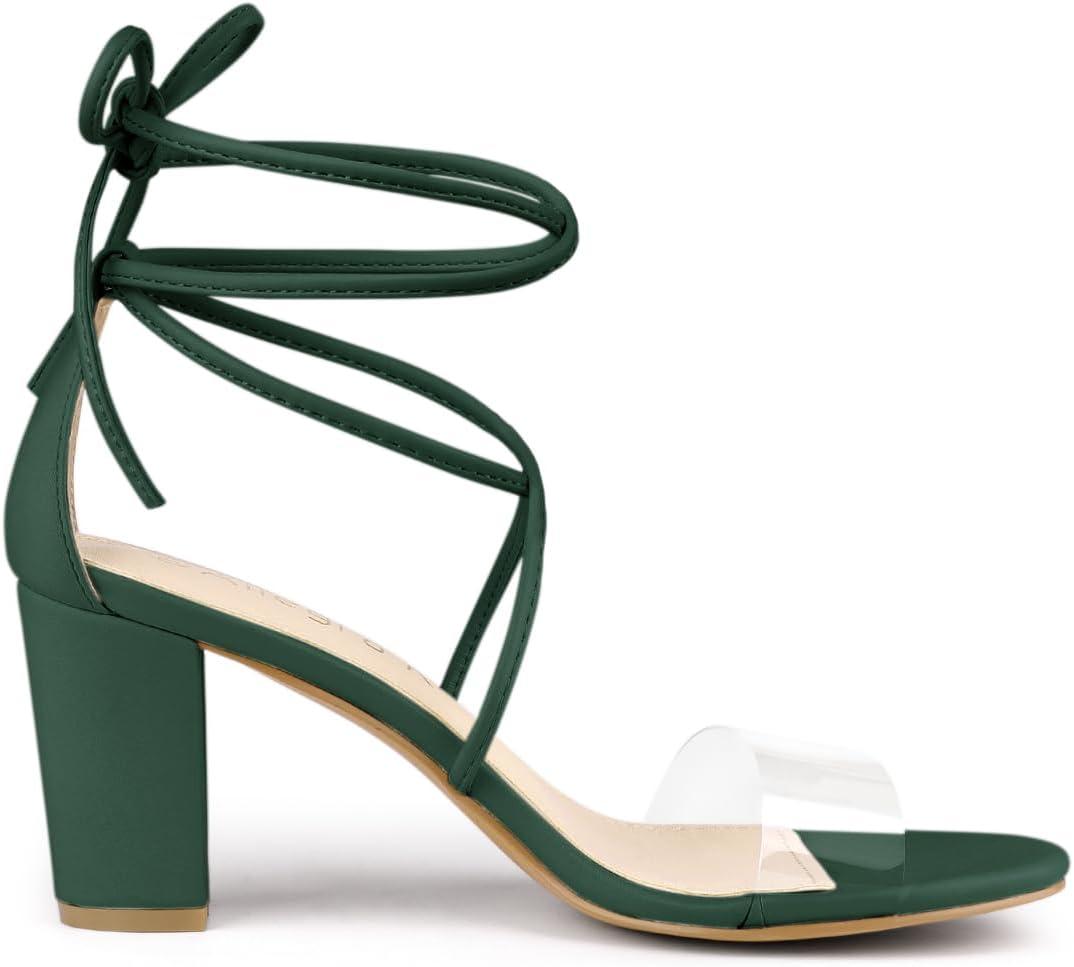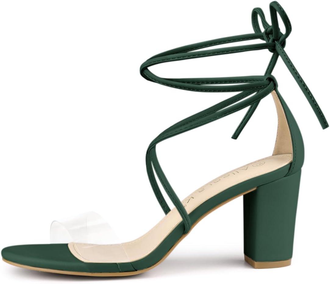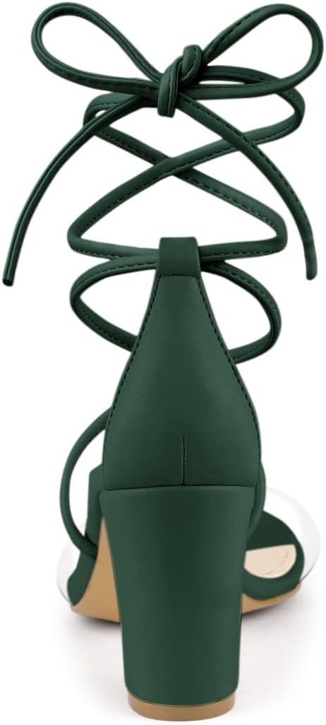 Allegra K Women’s Clear Strap Block Heels Lace Up Heels Sandals(Dark Green)