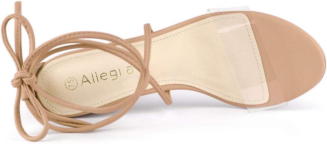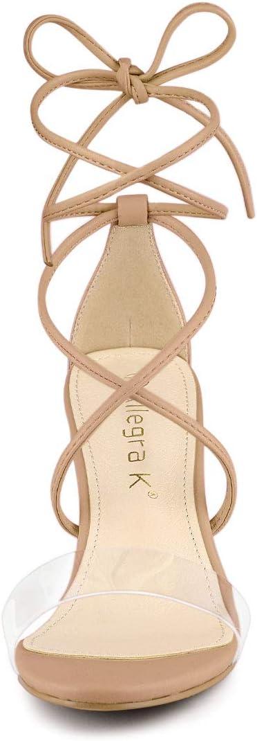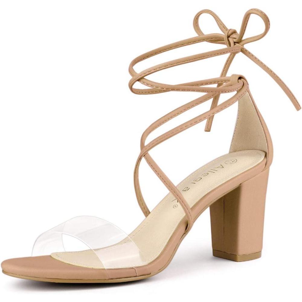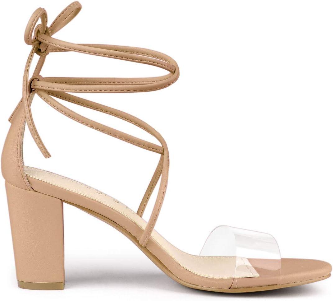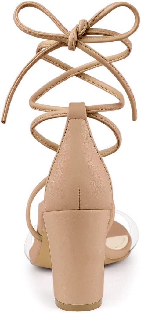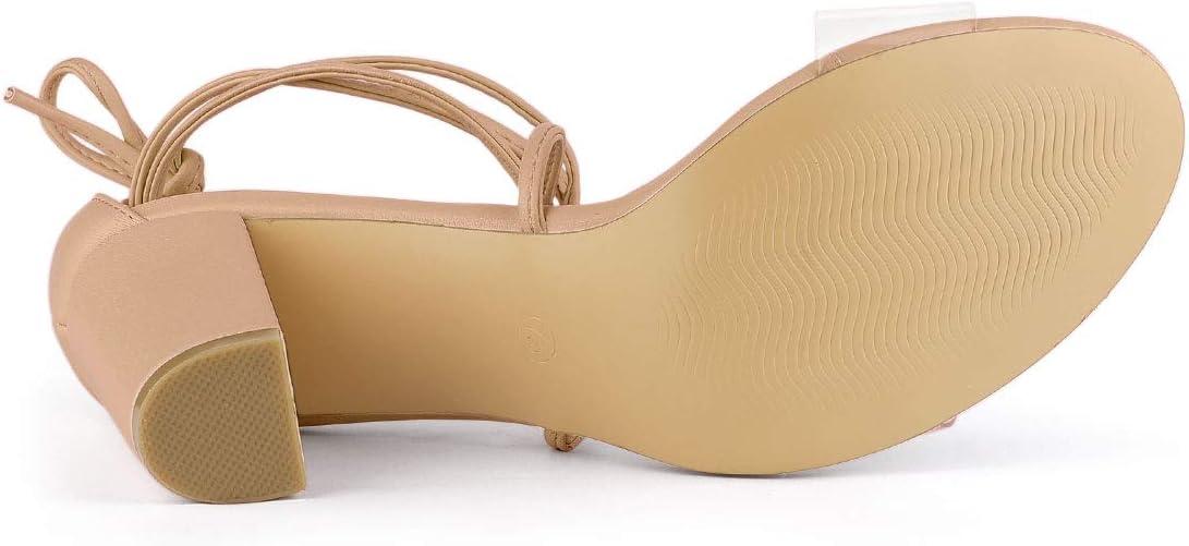 Allegra K Women’s Clear Strap Block Heels Lace Up Heels Sandals(Nude)