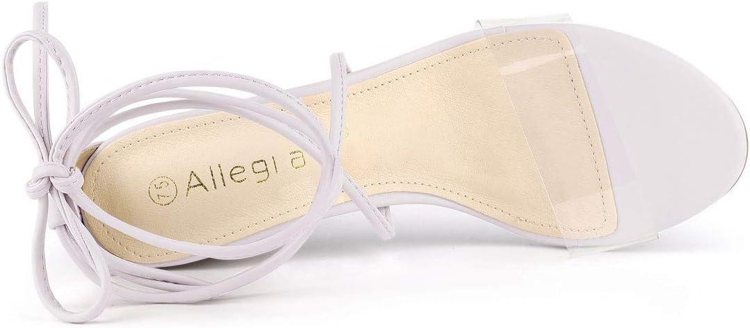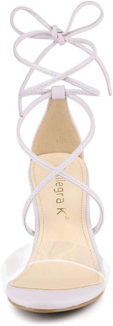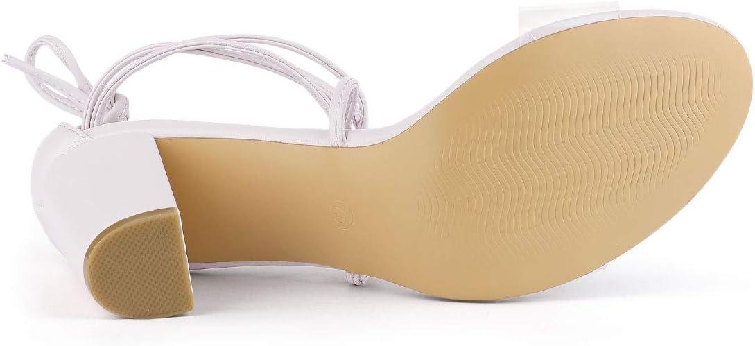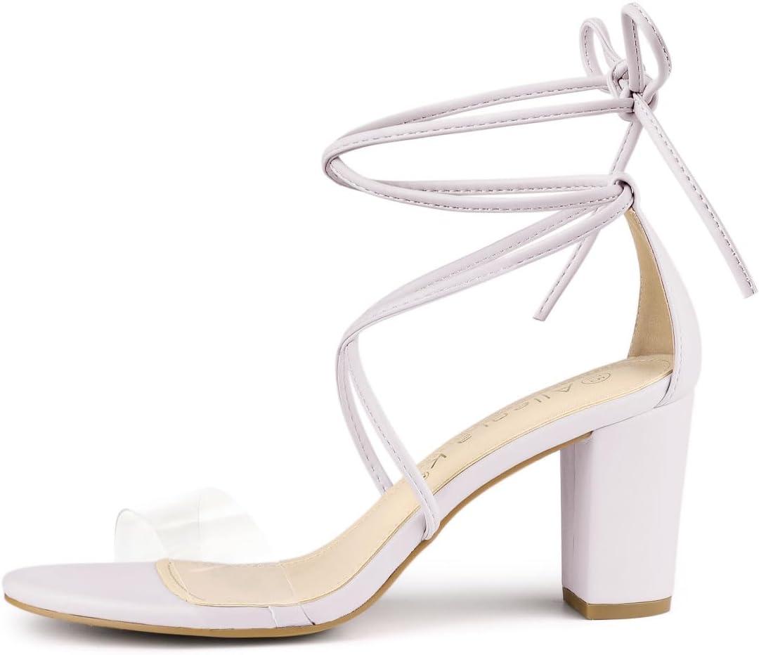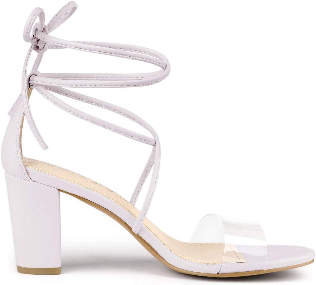 Allegra K Women’s Clear Strap Block Heels Lace Up Heels Sandals(Nude)