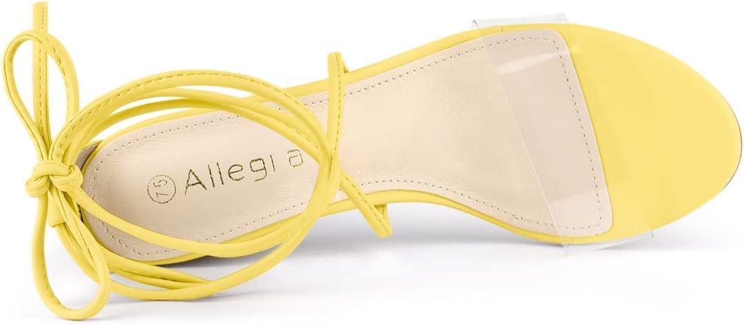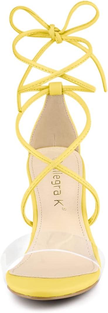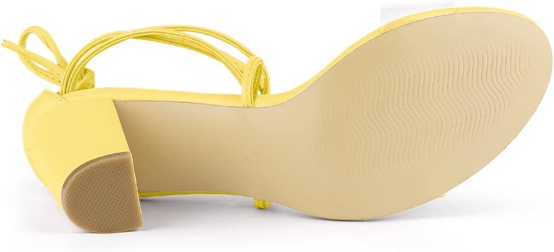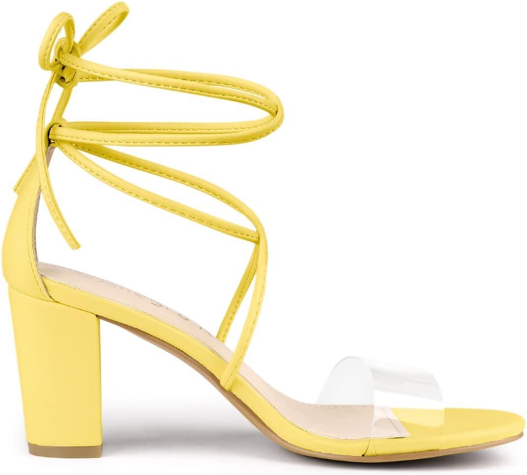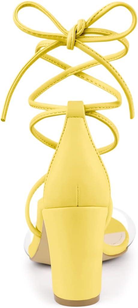 Allegra K Women’s Clear Strap Block Heels Lace Up Heels Sandals(Yellow)