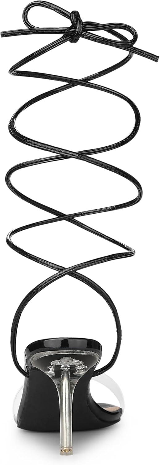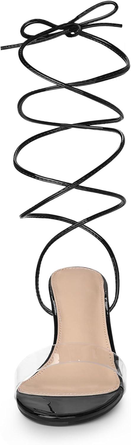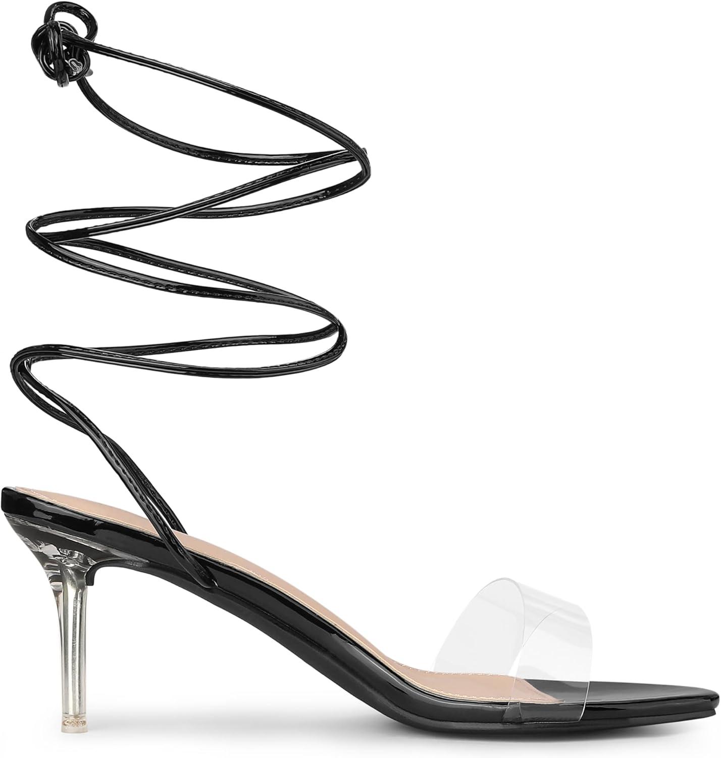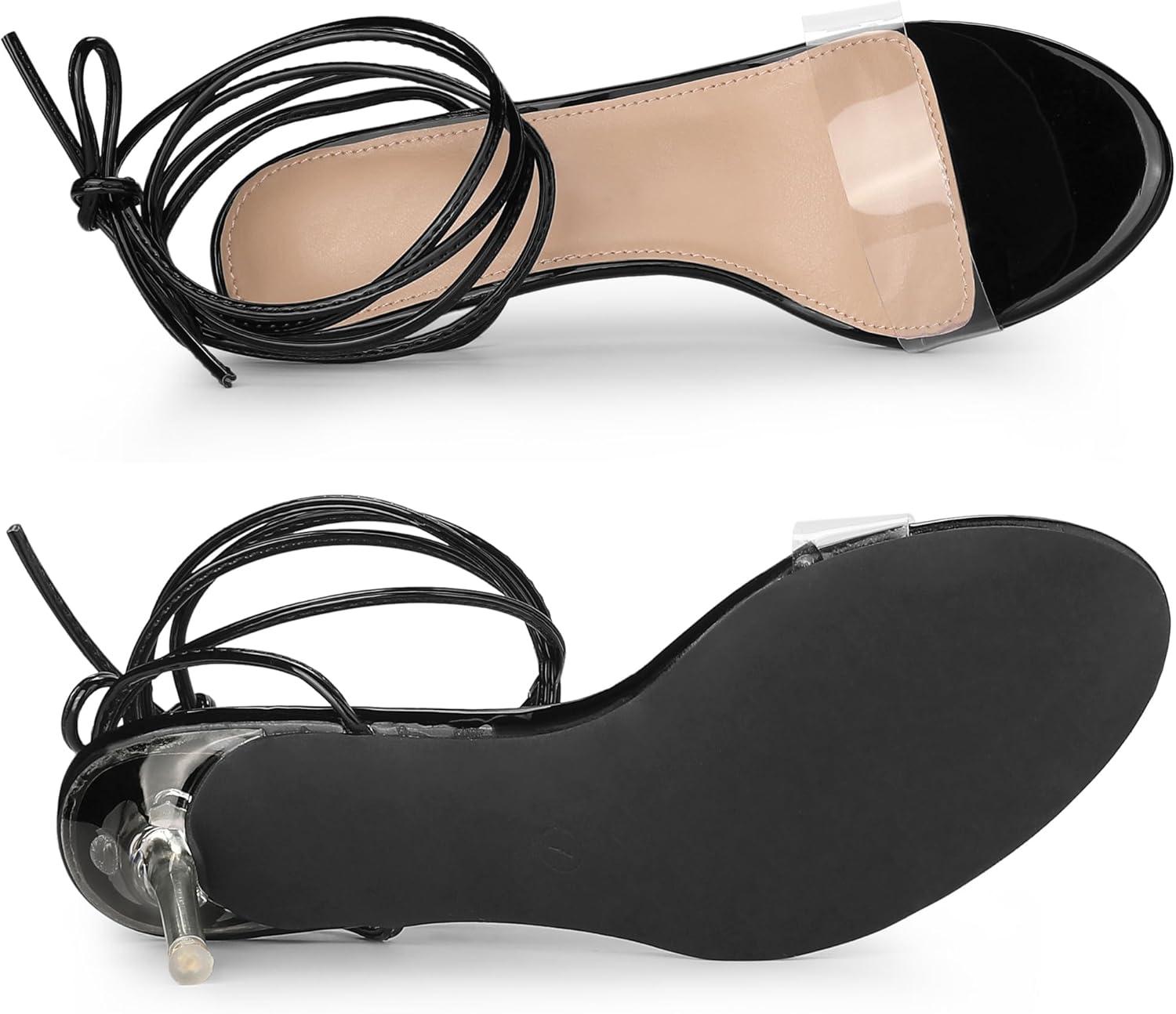 Allegra K Women’s Clear Strap Lace Up Stiletto Heels Sandals(Black)