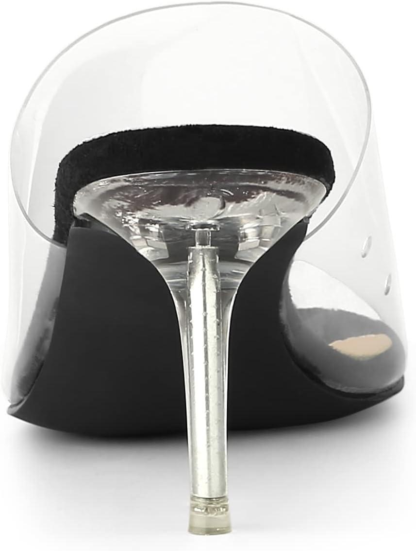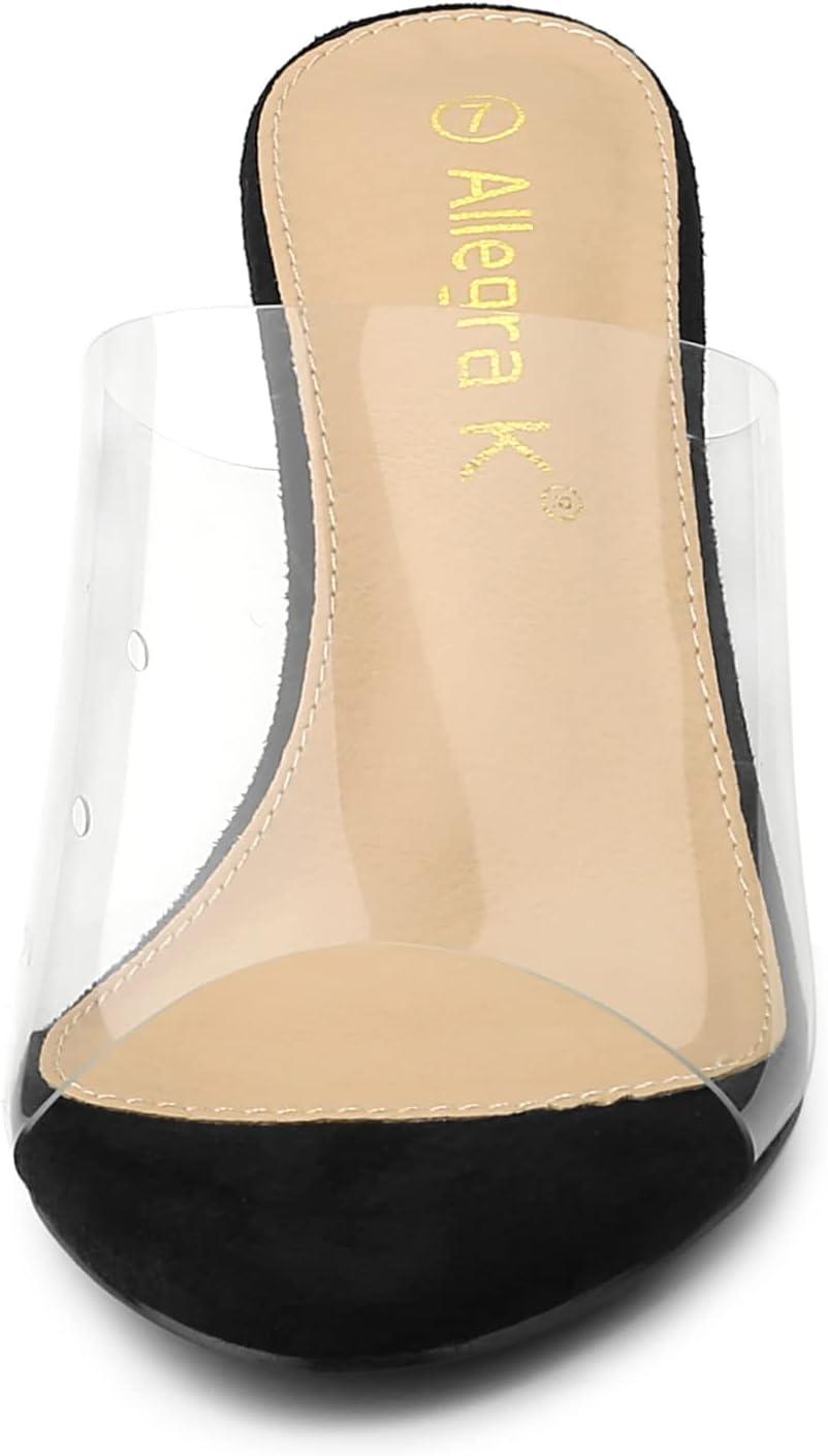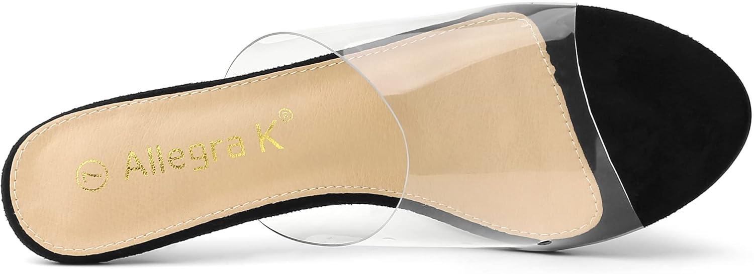 Allegra K Women's Clear Strap Open Toe Slip On Stiletto Heel Slide Sandals(Black)