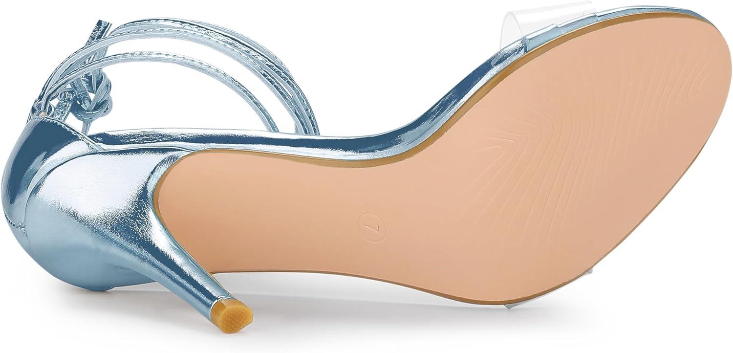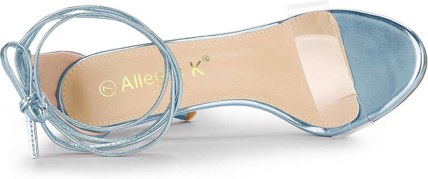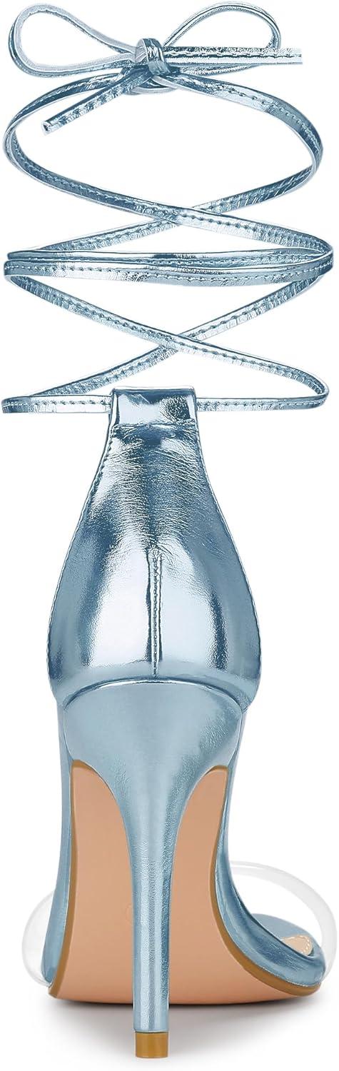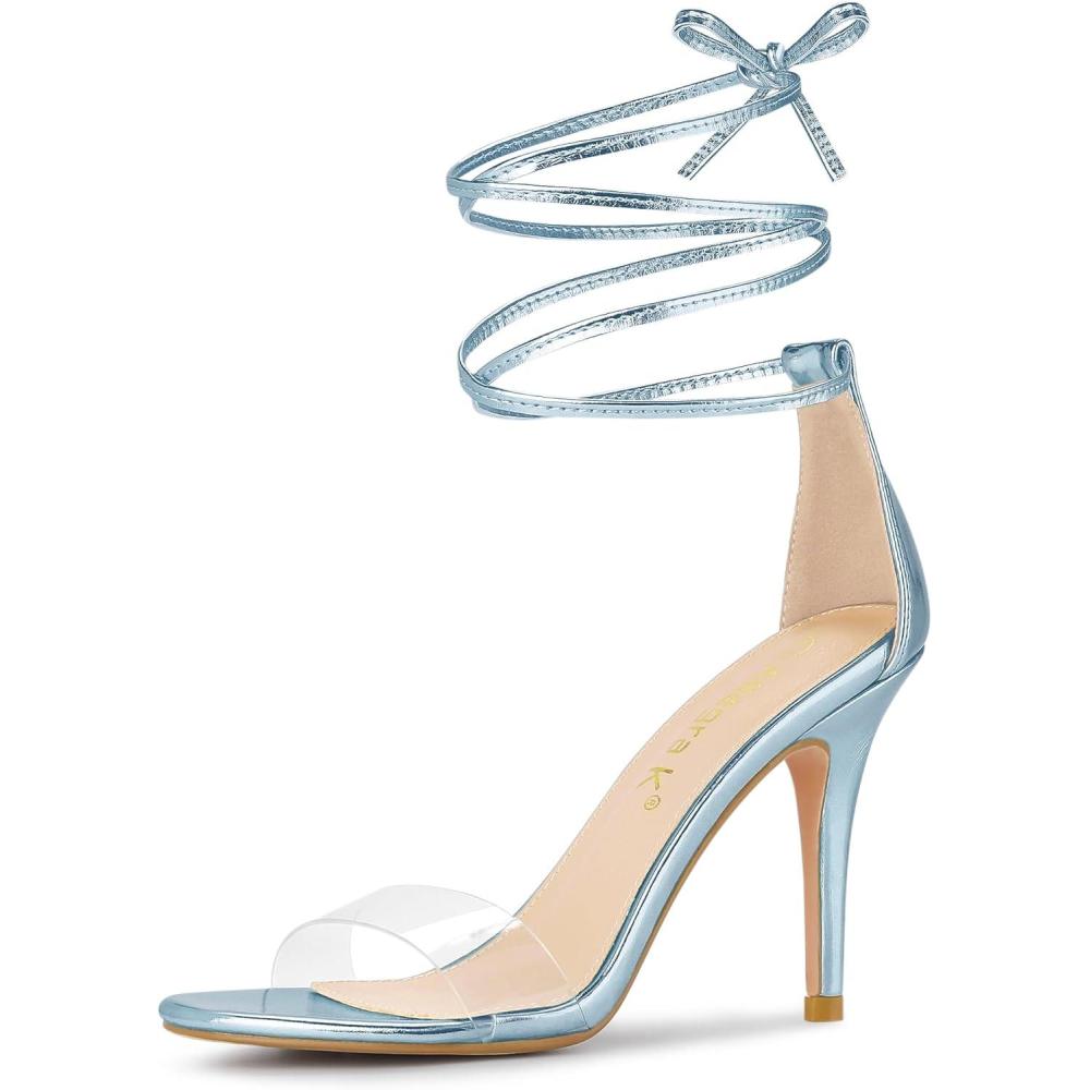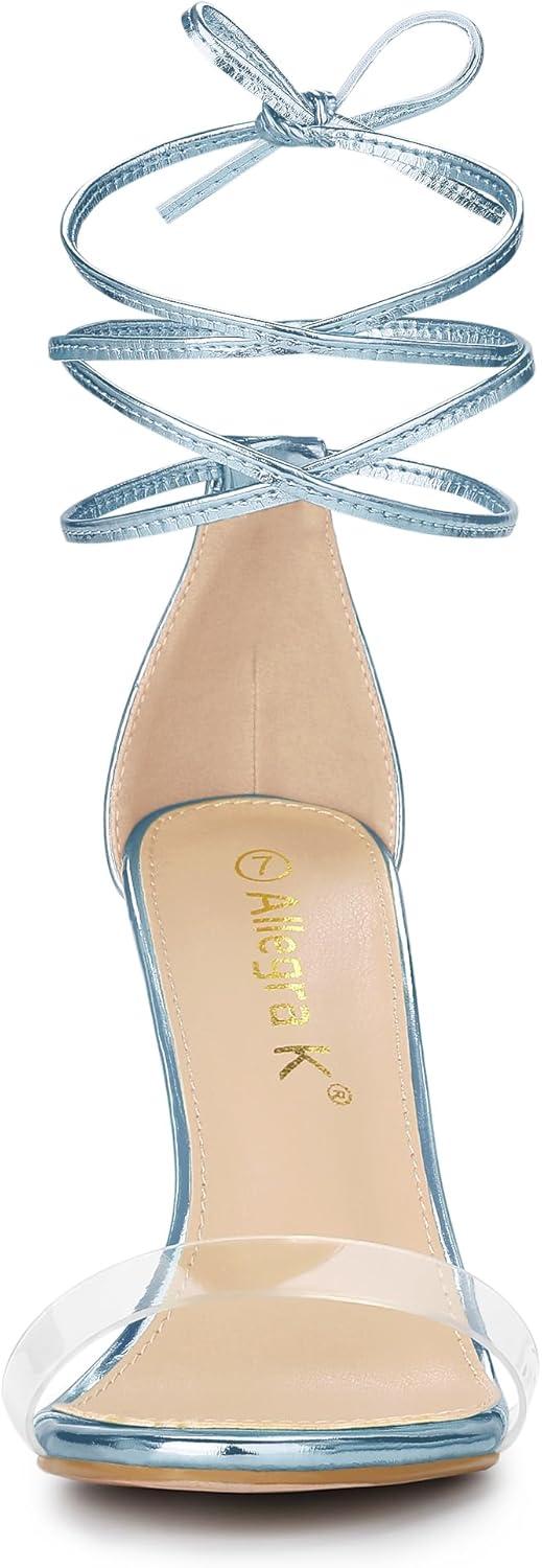 Allegra K Women’s Clear Strap Stiletto Heel Lace Up Heels Sandals(Light Blue)