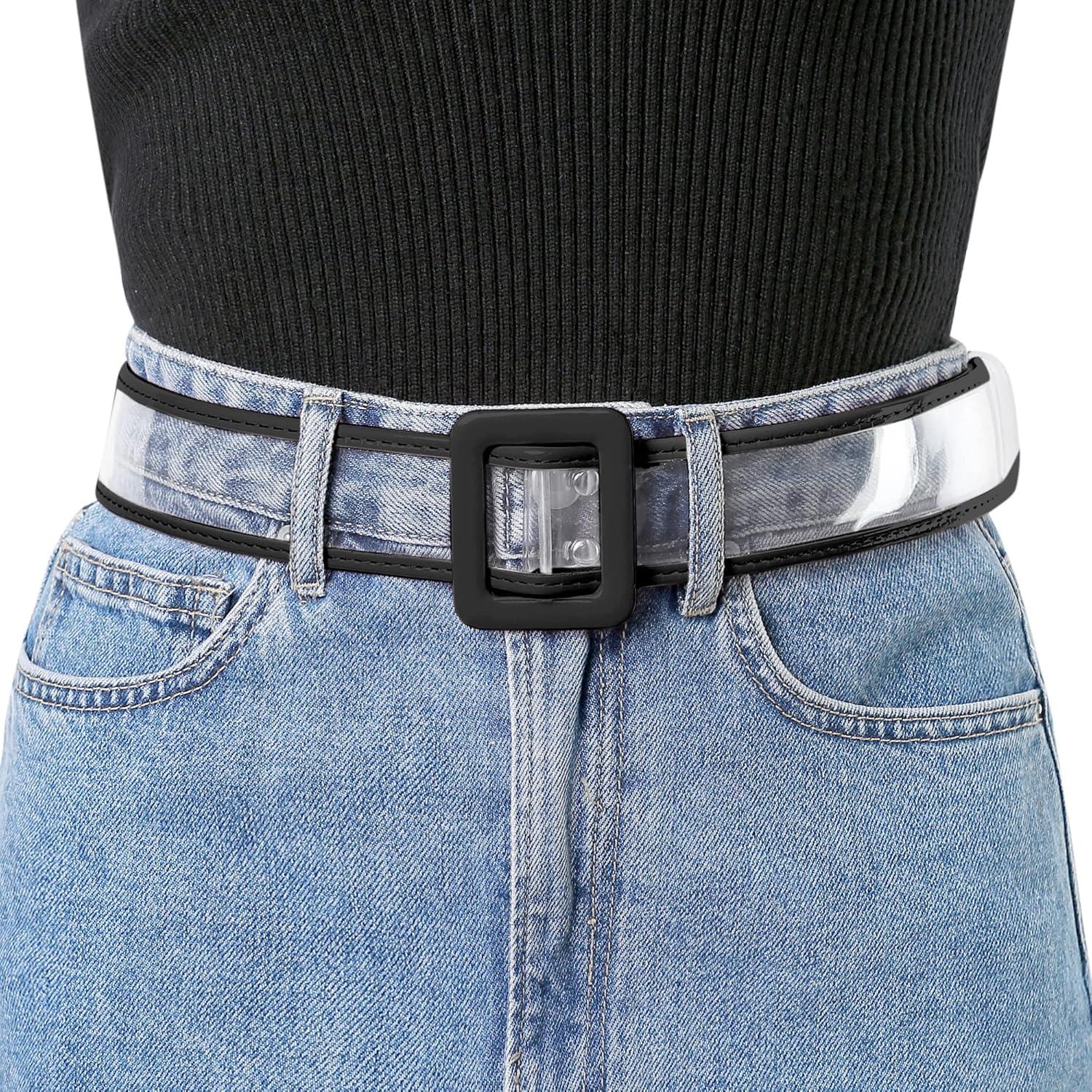 Allegra K Womens Clear Waist Belts, Plus Size Skinny Belt Waistband for Jeans Dresses Coats(Black)