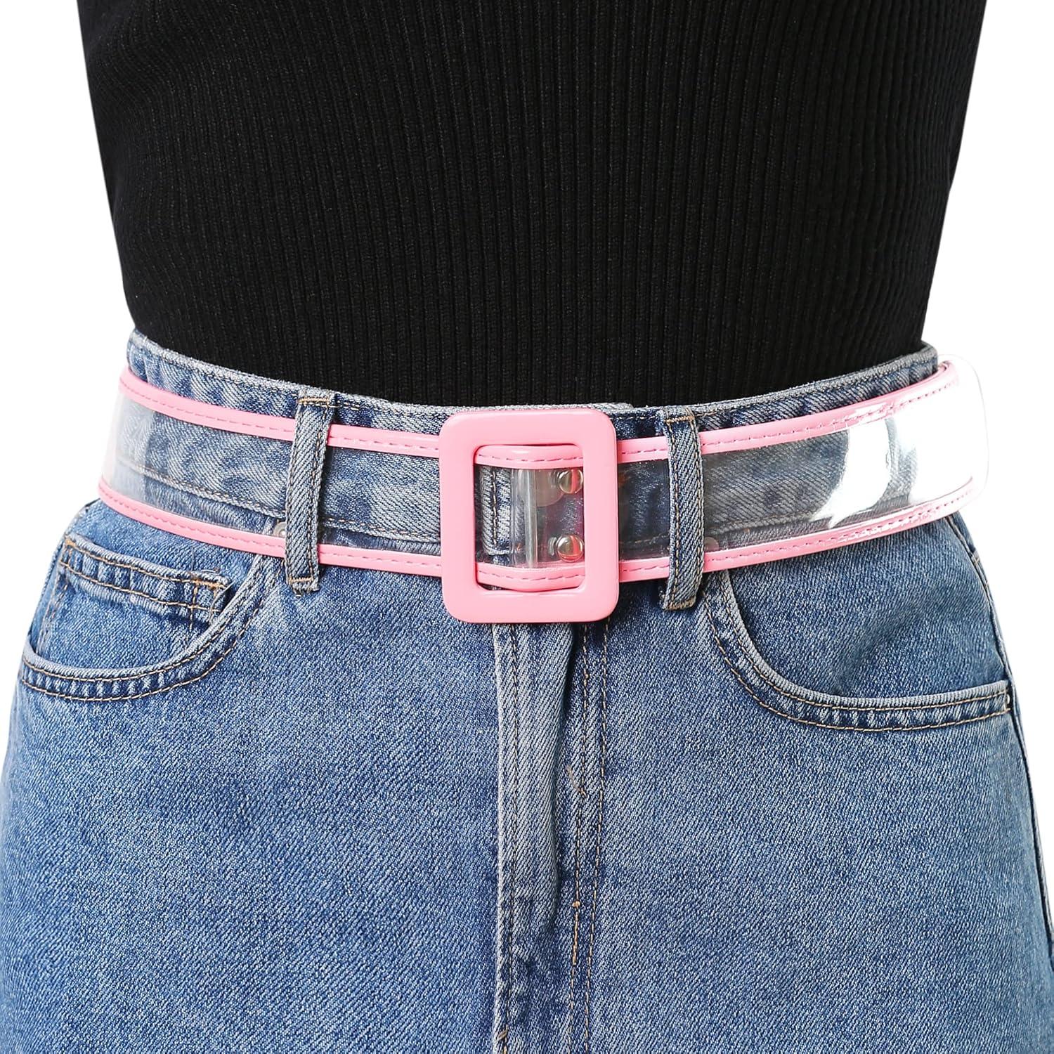 Allegra K Womens Clear Waist Belts, Plus Size Skinny Belt Waistband for Jeans Dresses Coats(Pink)