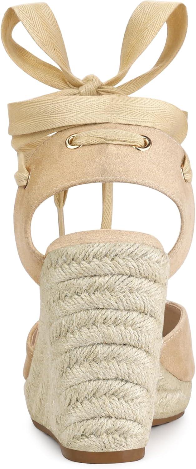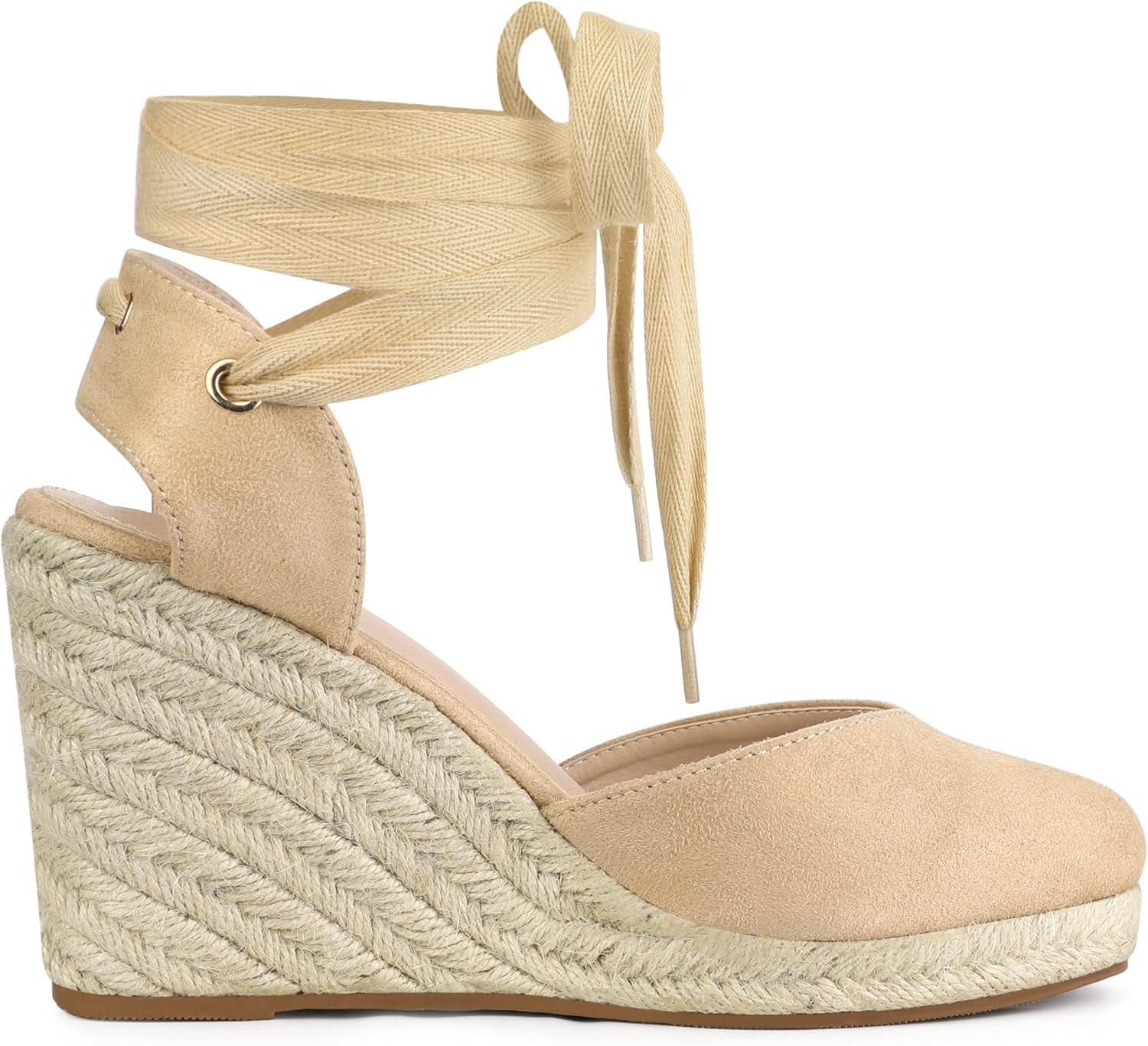 Allegra K Women’s Closed Toe Espadrilles Wedges Tie Up Wedge Sandals(Beige)