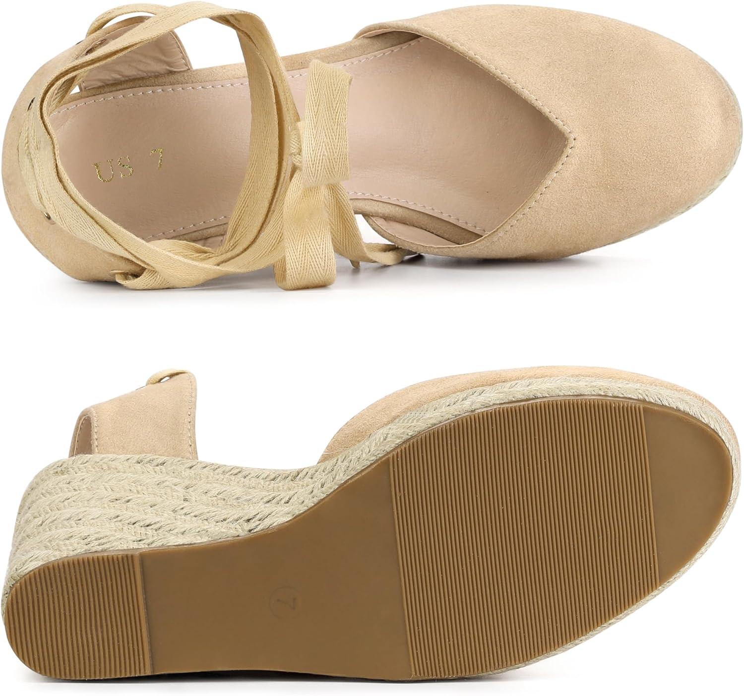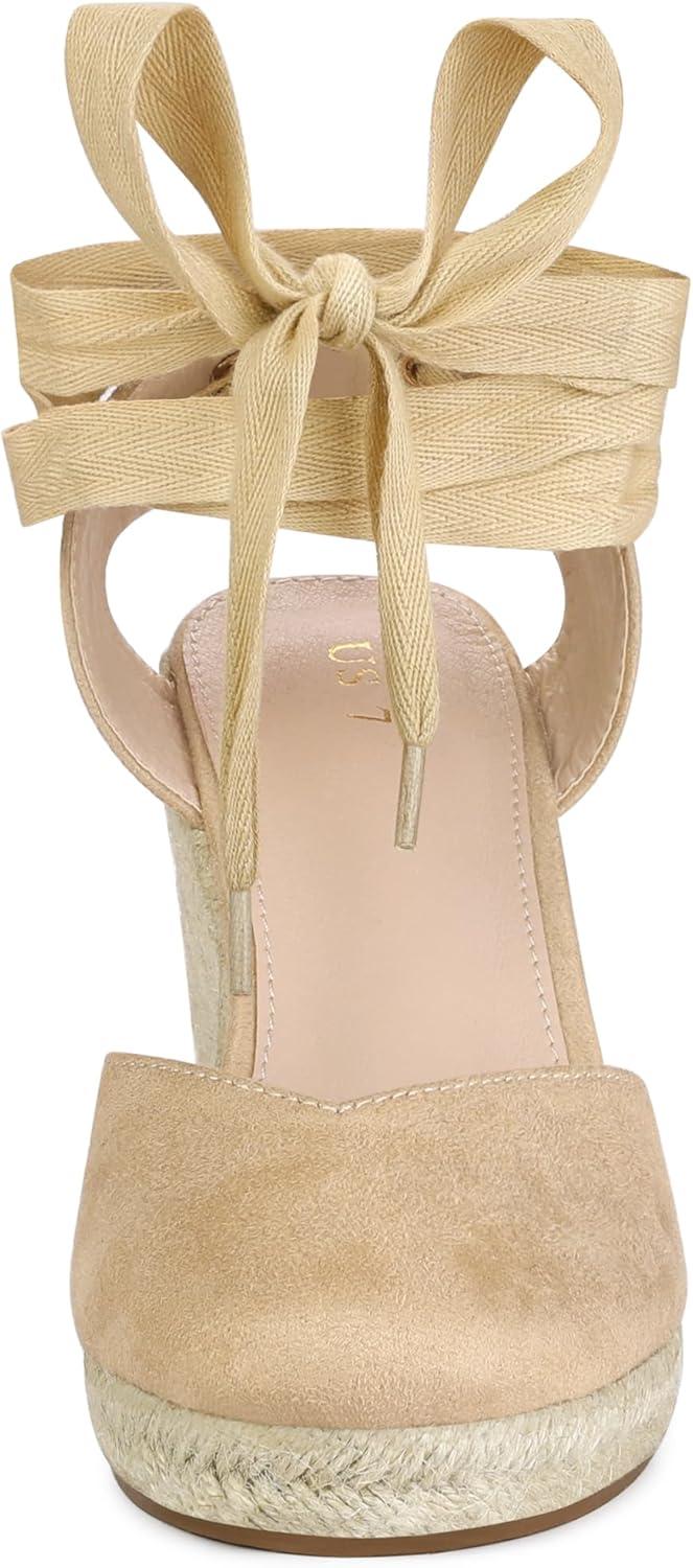 Allegra K Women's Closed Toe Espadrilles Wedges Tie Up Wedge Sandals(Beige)