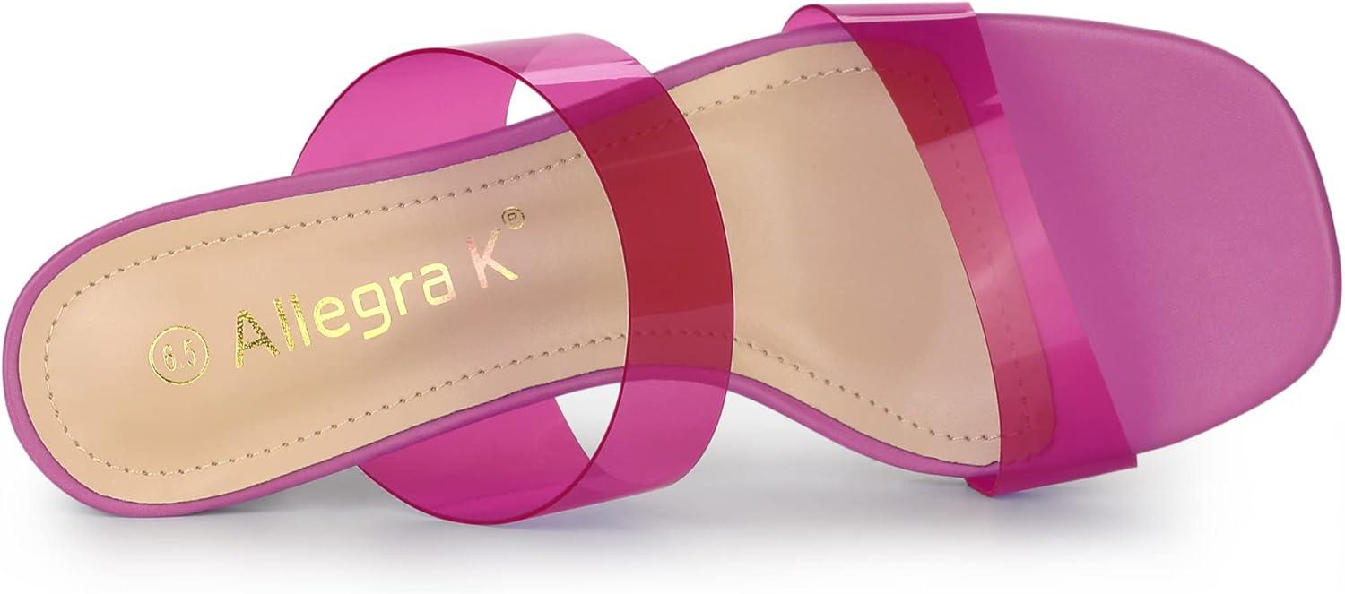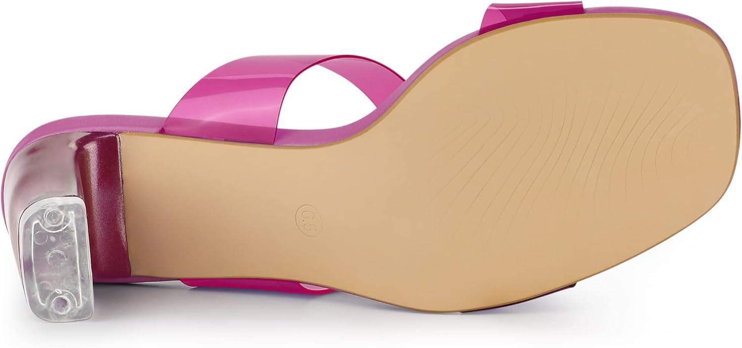 Allegra K Women's Colorful Straps Clear Heels Chunky Heel Clear Sandals(Hot Pink)