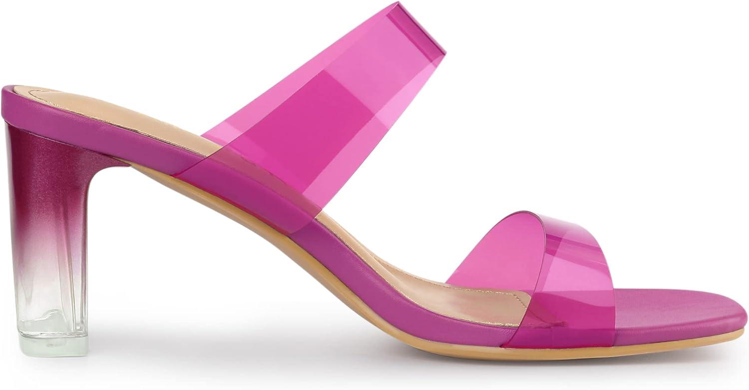 Allegra K Women’s Colorful Straps Clear Heels Chunky Heel Clear Sandals(Hot Pink)