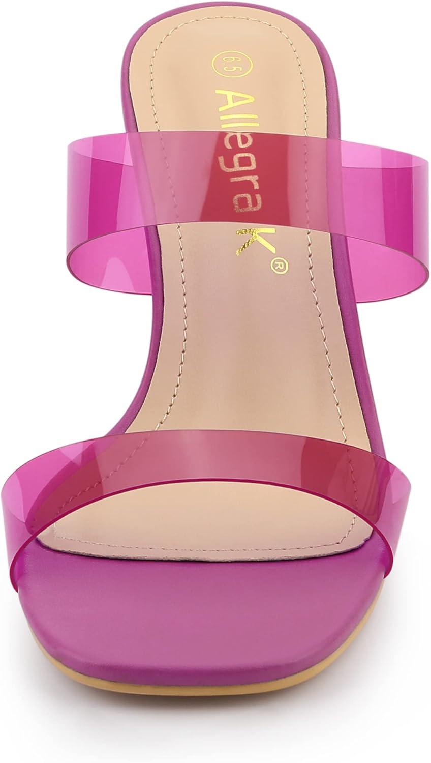 Allegra K Women’s Colorful Straps Clear Heels Chunky Heel Clear Sandals(Purple)