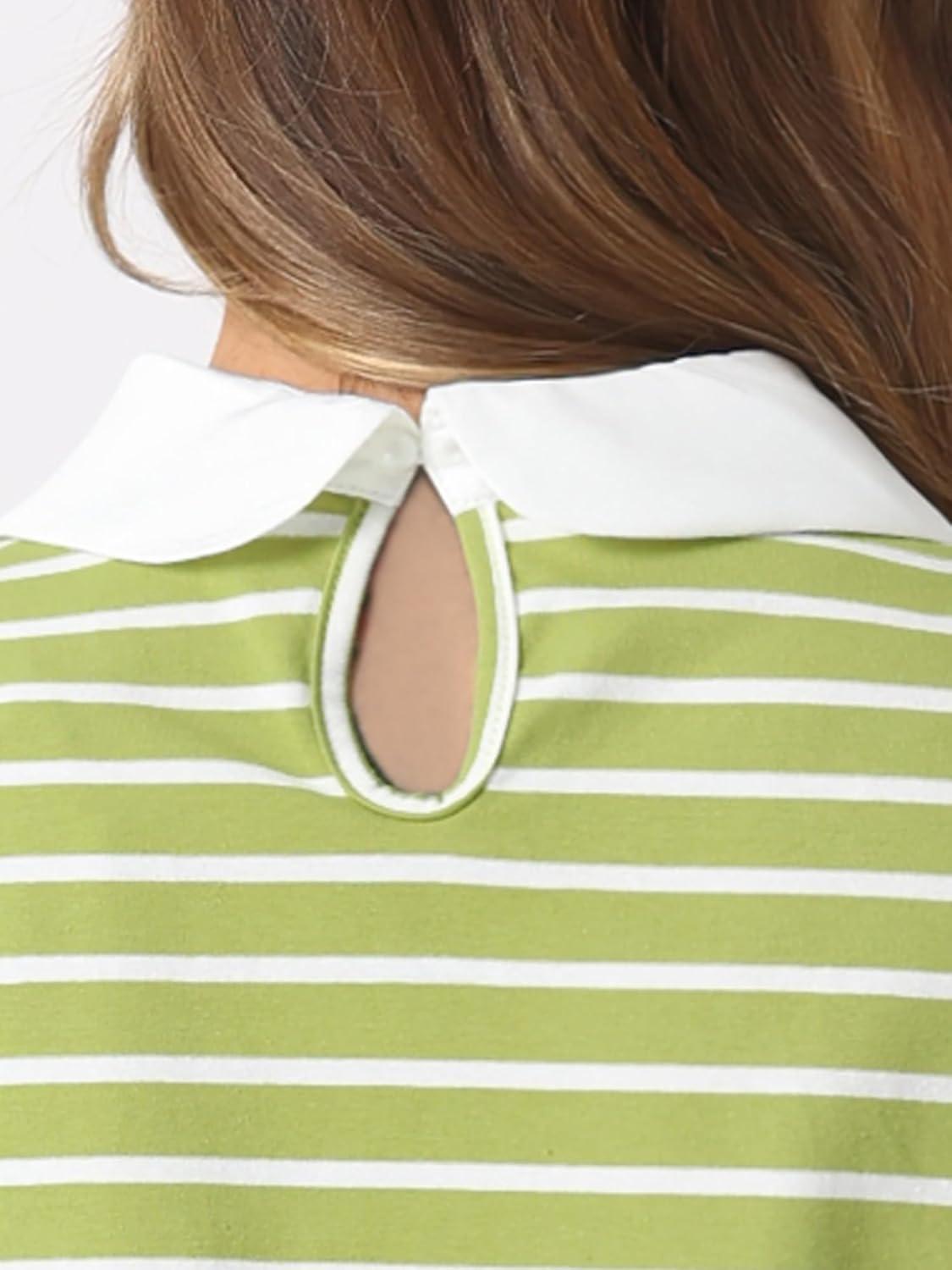 Allegra K Women’s Contrast Collar Long Sleeves Peter Pan Collar Halloween Striped Blouse Top(Green)
