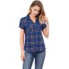 Allegra K Women's Cotton Classic Button Down Western Plaid Shirt(Blue)