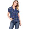 imageAllegra K Womens Cotton Classic Button Down Western Plaid ShirtBlue