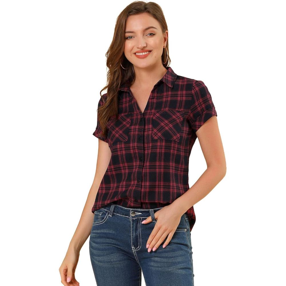 Be the first to review “Allegra K Women’s Cotton Classic Button Down Western Plaid Shirt(Red Black)”
