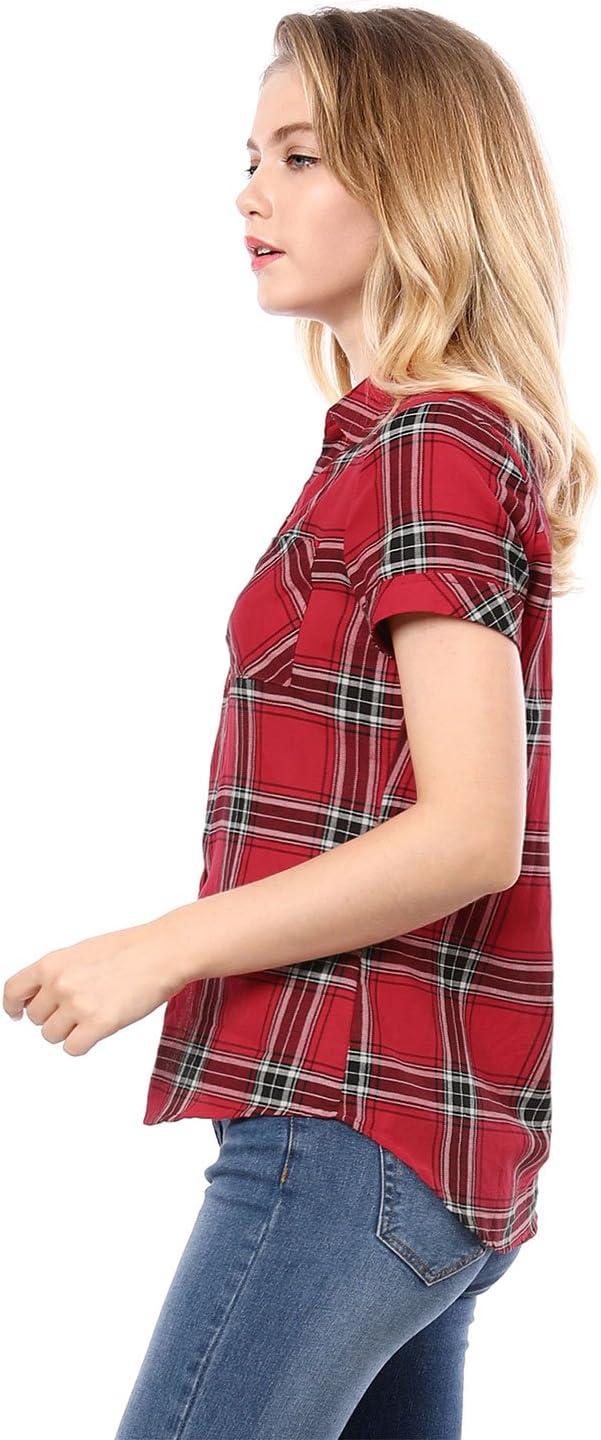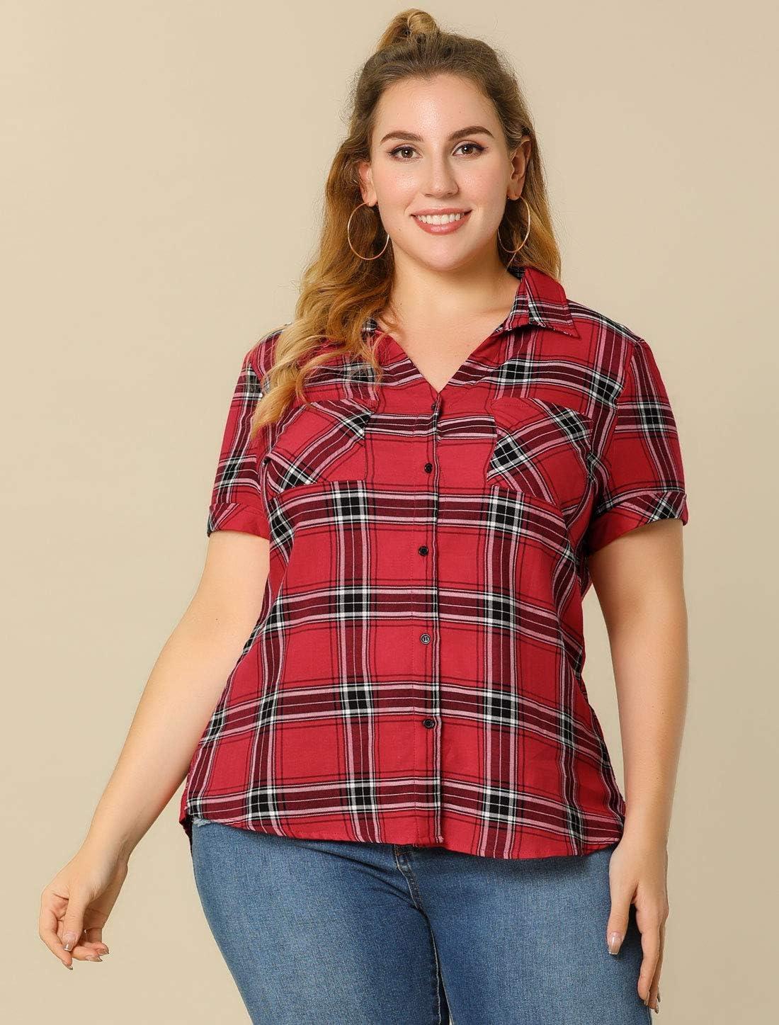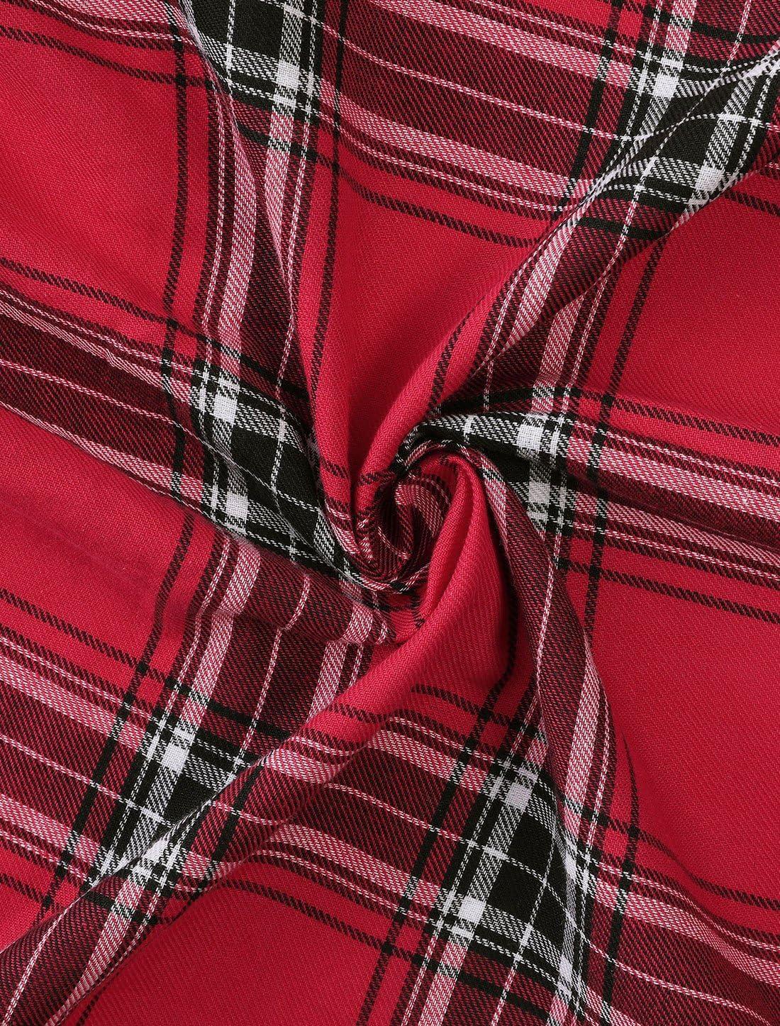 Allegra K Women’s Cotton Classic Button Down Western Plaid Shirt(Red)