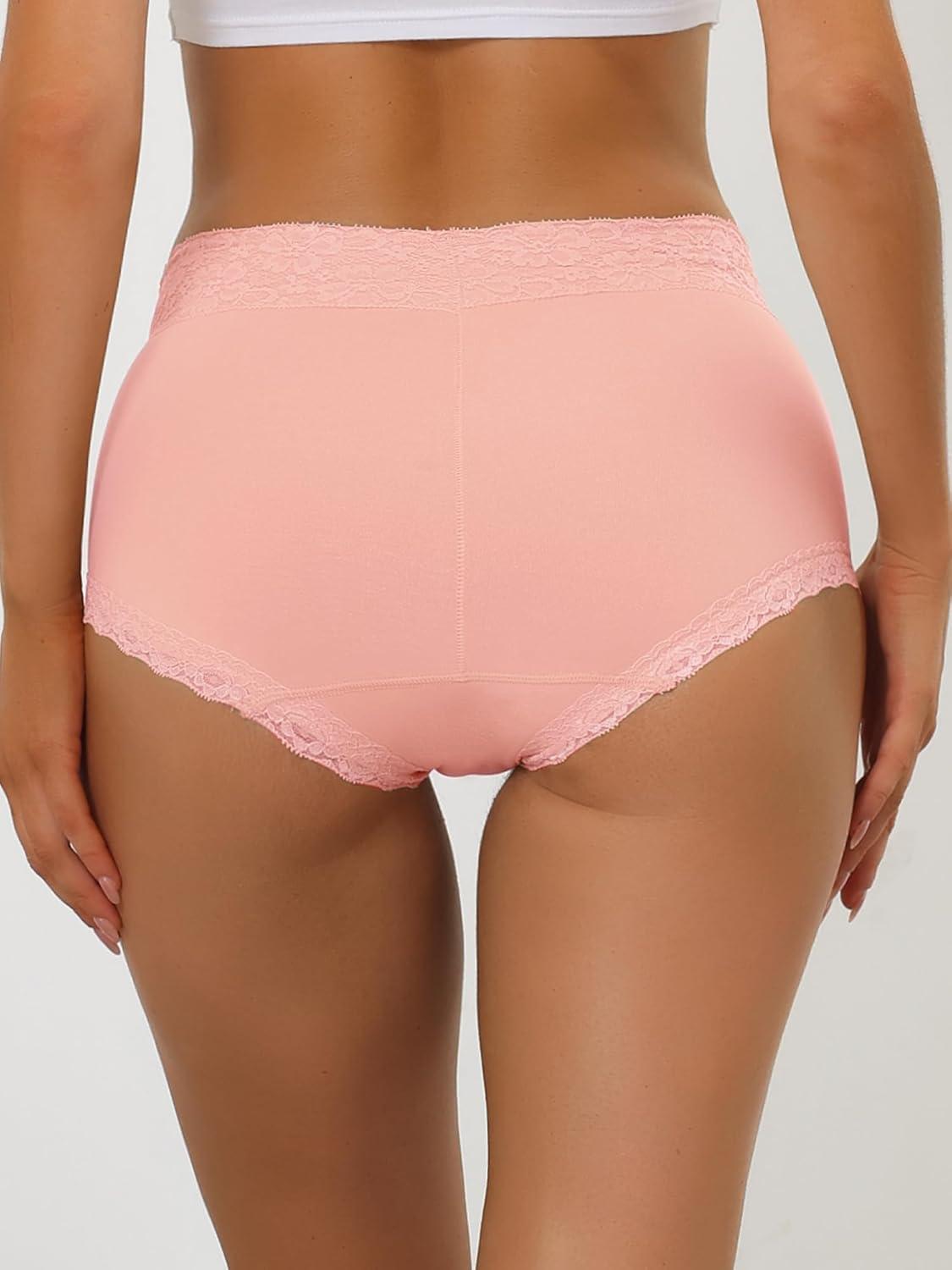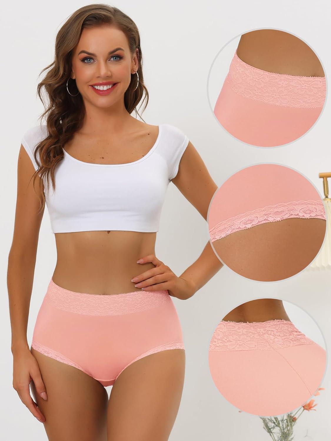 Allegra K Women’s Cotton Underwear High-Rise Lace Trim Tummy Control Full Coverage Brief(Pink)
