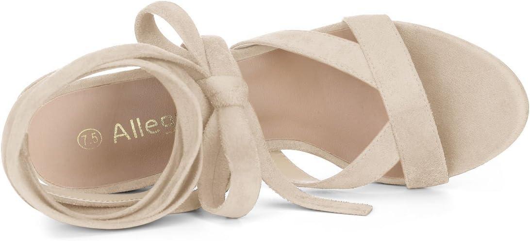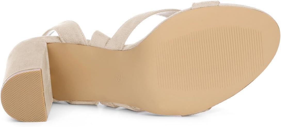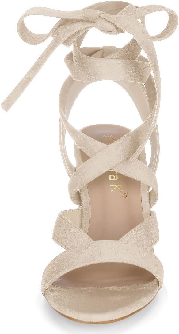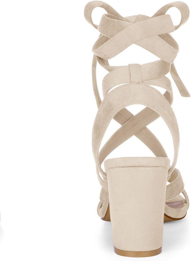 Allegra K Women’s Crisscross Chunky Heel Lace Ups Sandals(Beige)